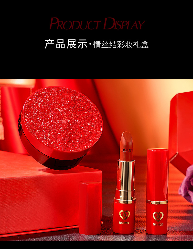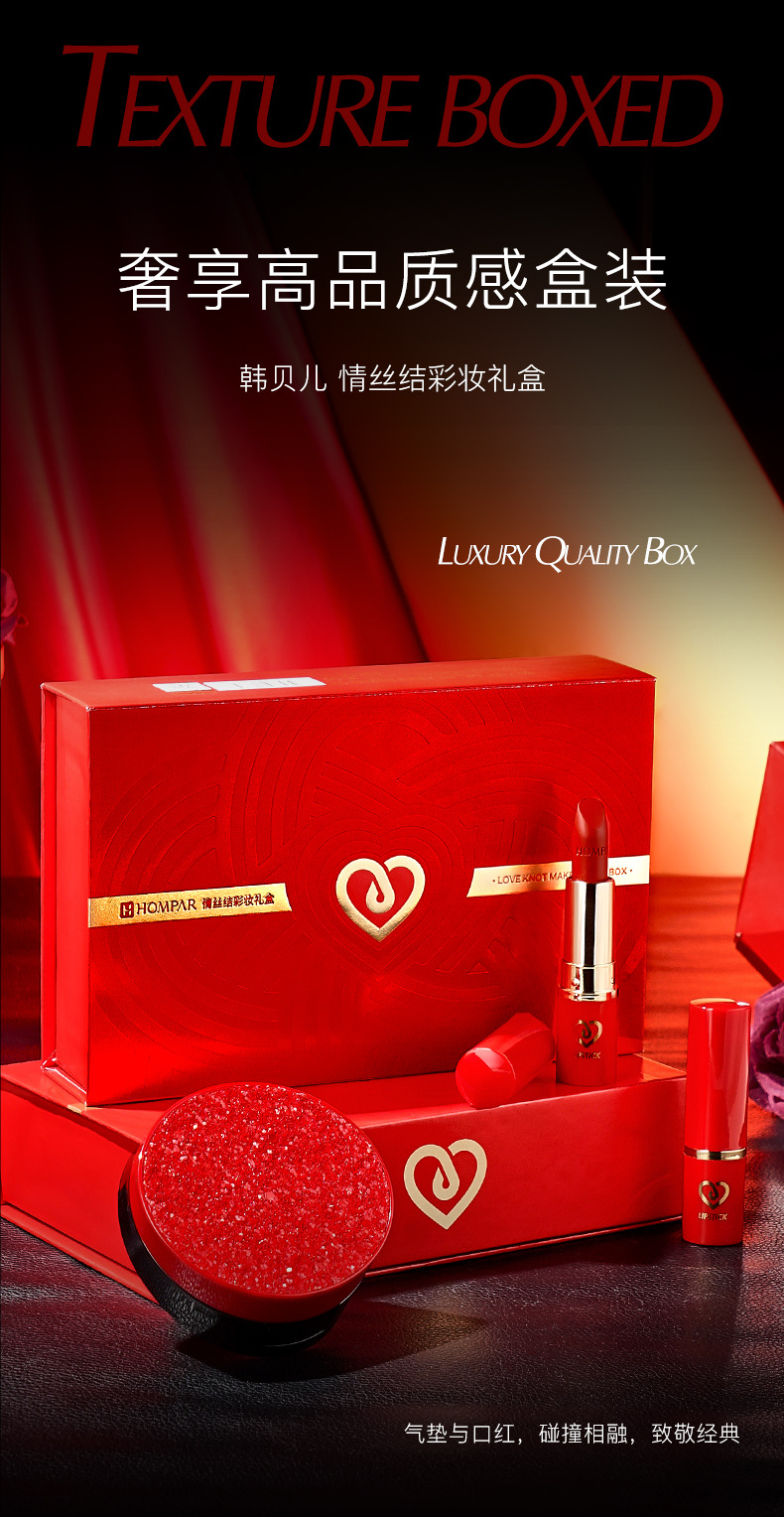 【粉丝福利❗️情丝结彩妆礼盒套装】红色礼盒点燃热烈挚爱,情丝结彩全是锁爱一生!口红唇膏气垫BB霜遮盖瑕疵修饰肤色套盒送情人节礼物