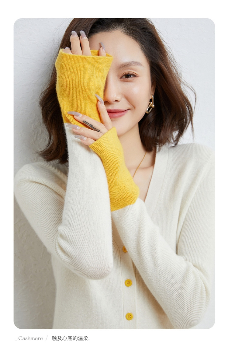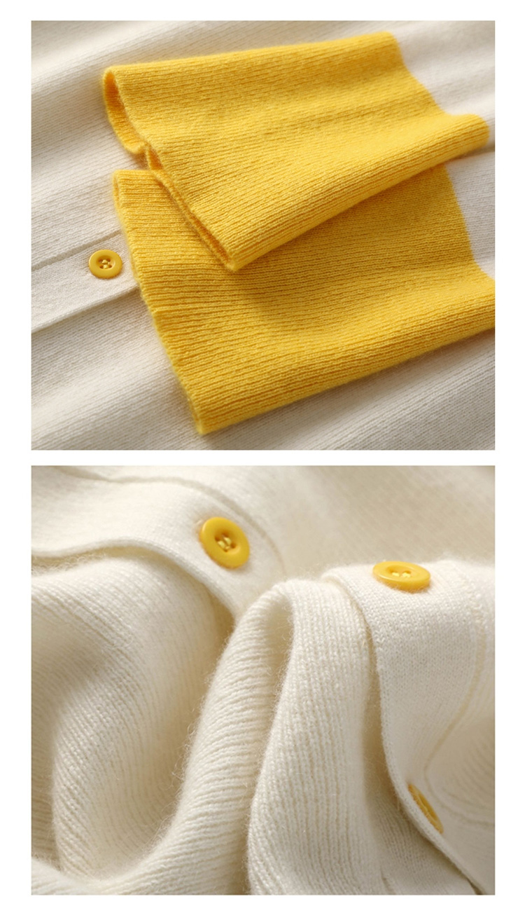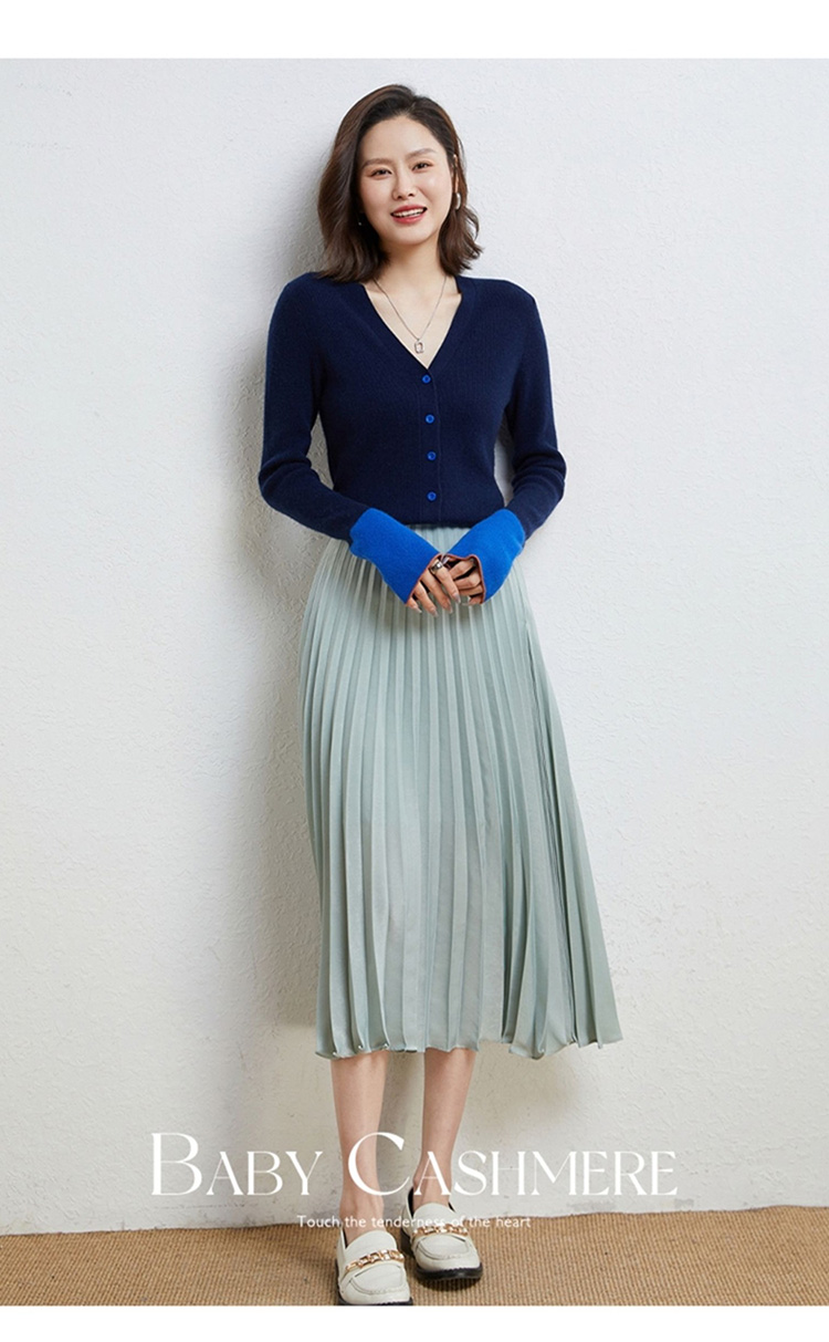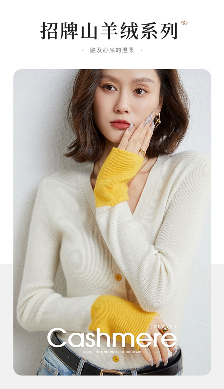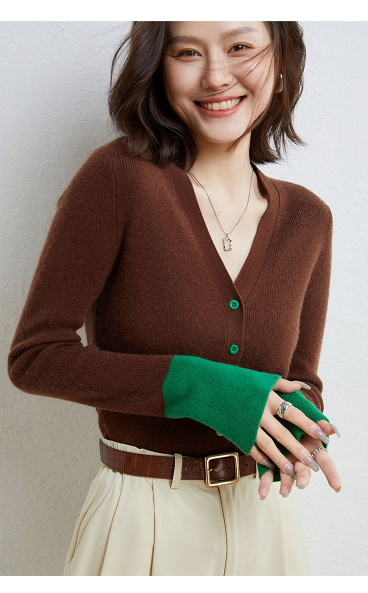 【秋冬时尚搭配】雾感喇叭袖拼色羊绒开衫 V领百搭条纹针织开衫 修身显瘦轻盈合体 柔软细腻温柔高雅