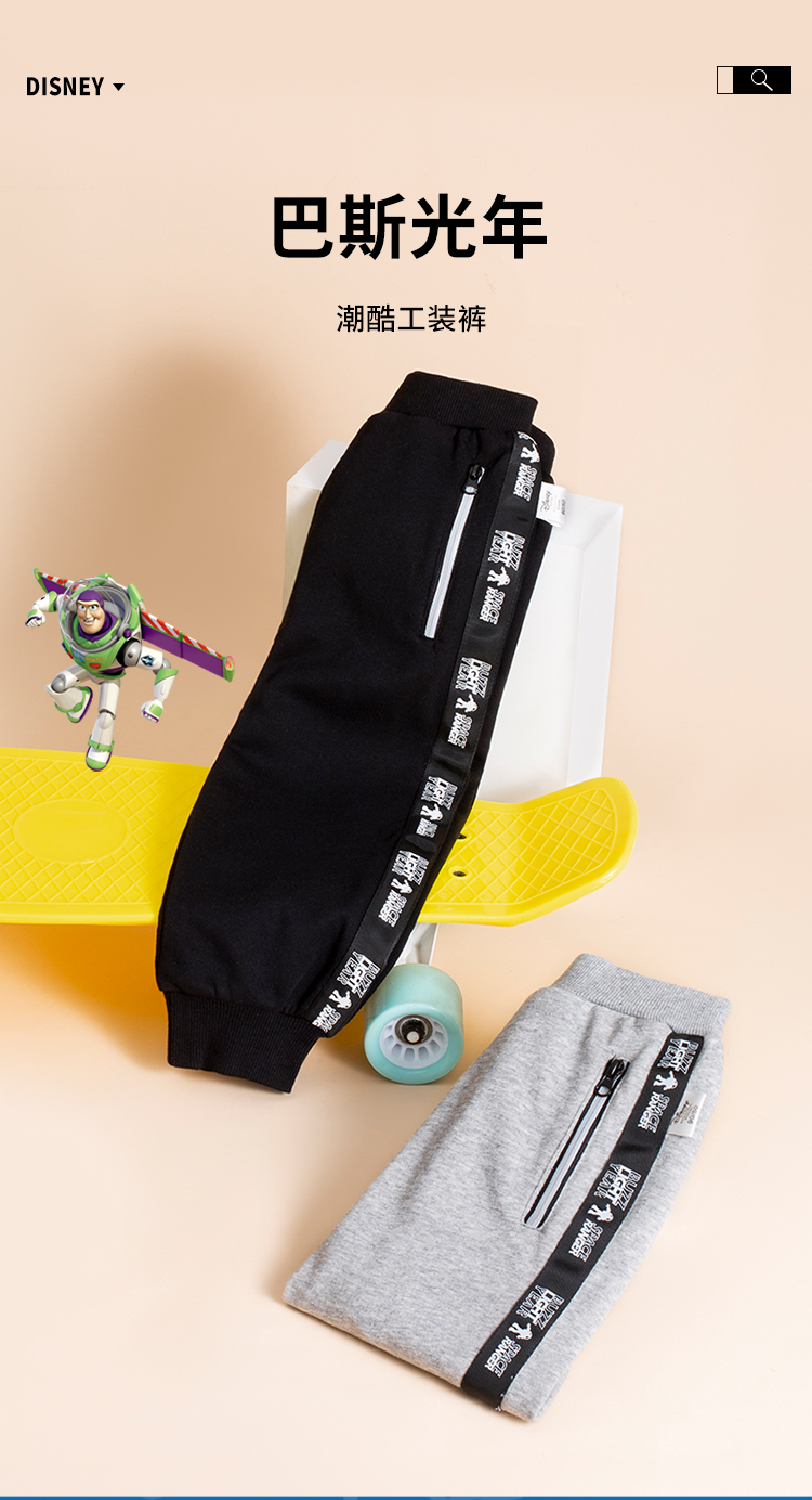 迪士尼童装男童运动休闲裤子字母时尚潮搭中大童宝宝春秋季束脚裤