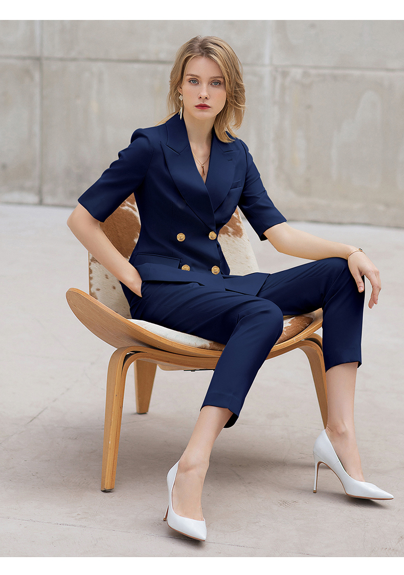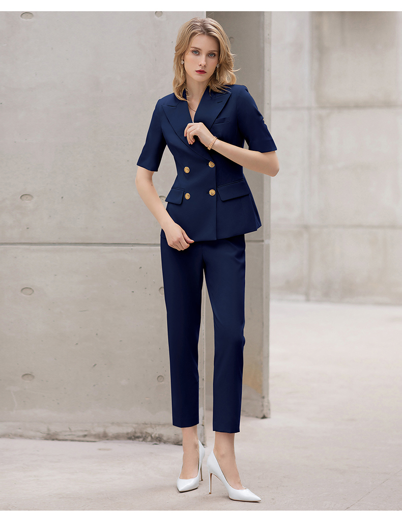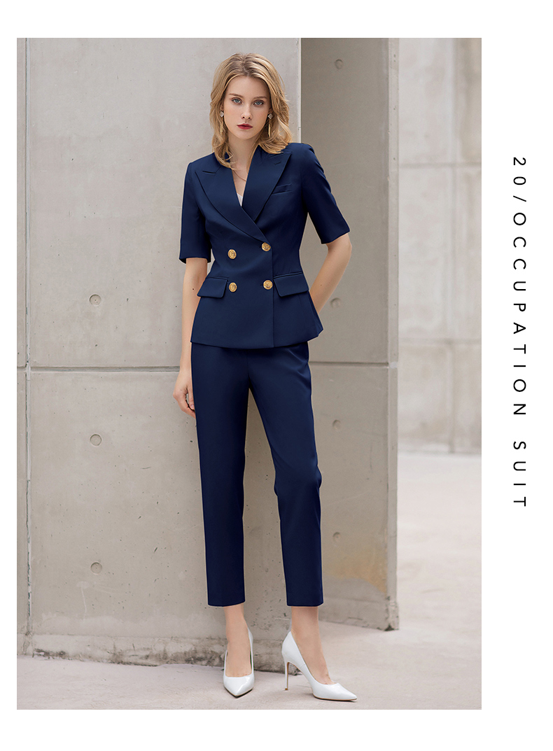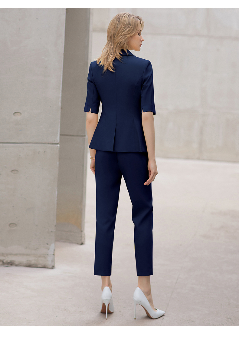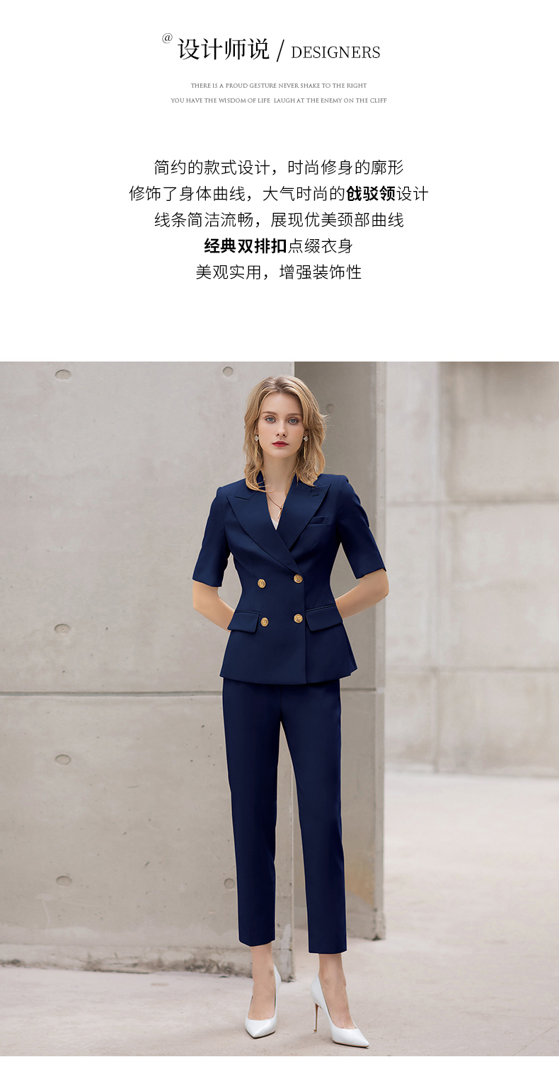 藏青色西装套装套裤女夏季比亚迪工装西服套装女职业售楼处工作服