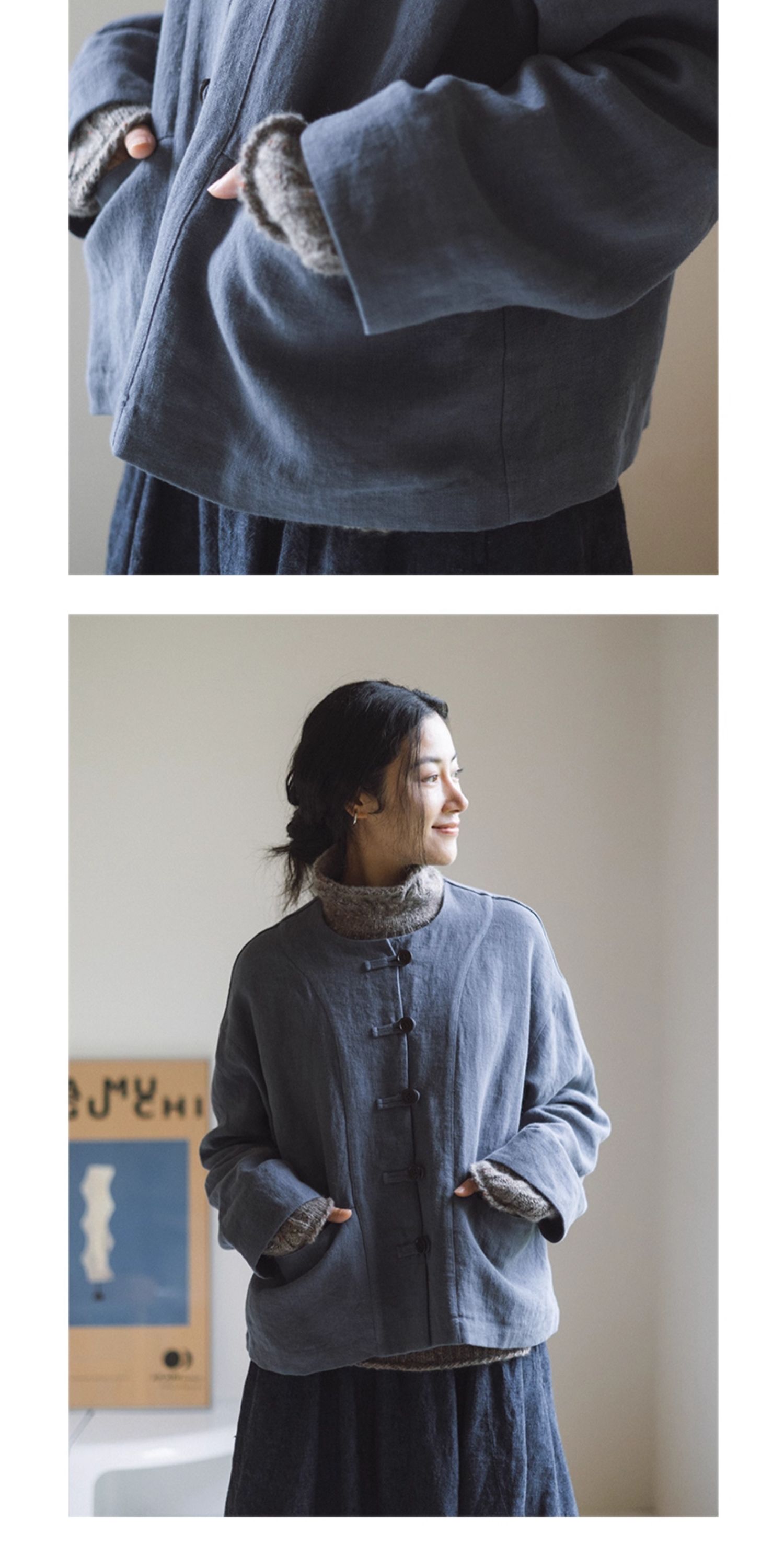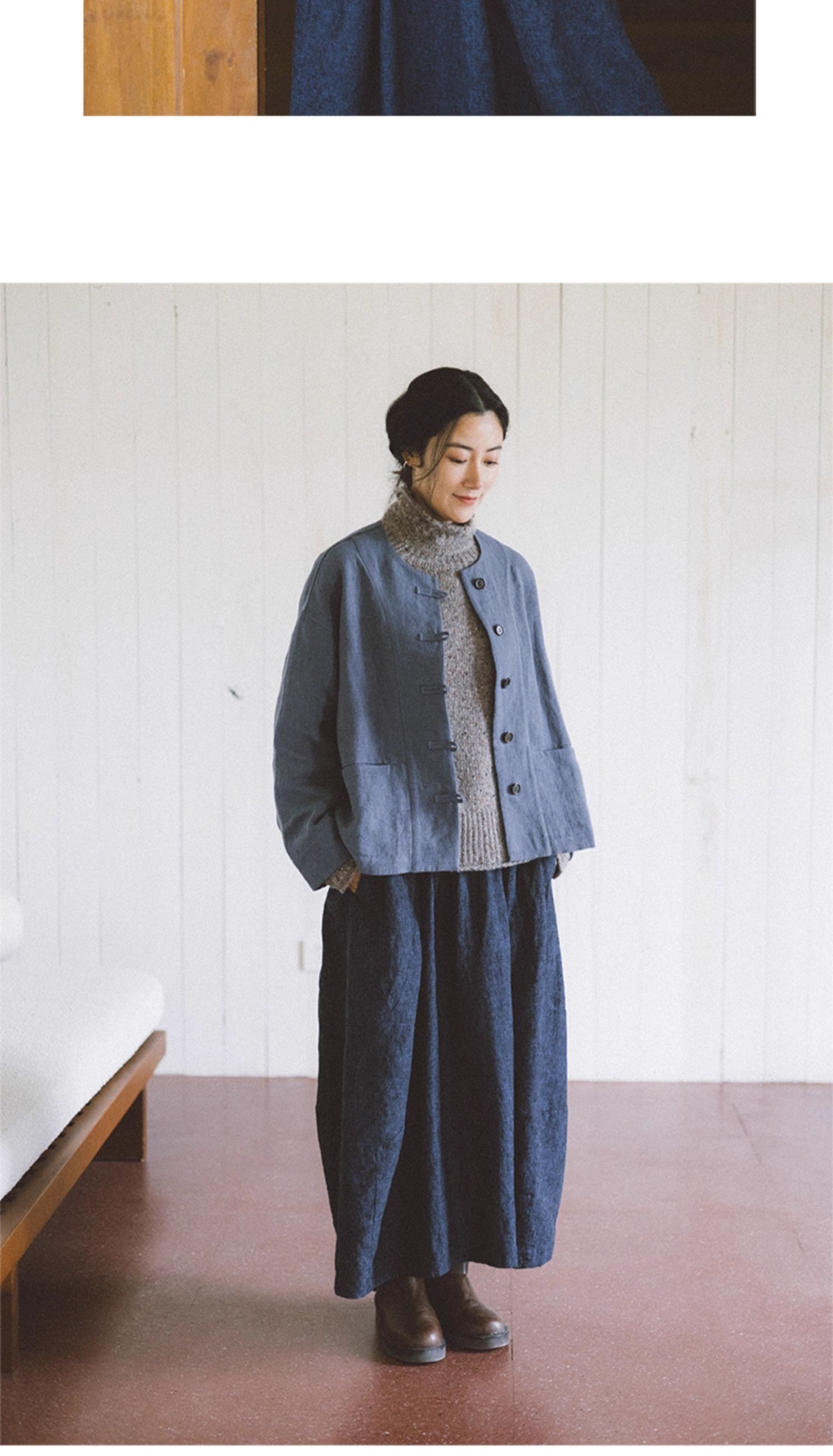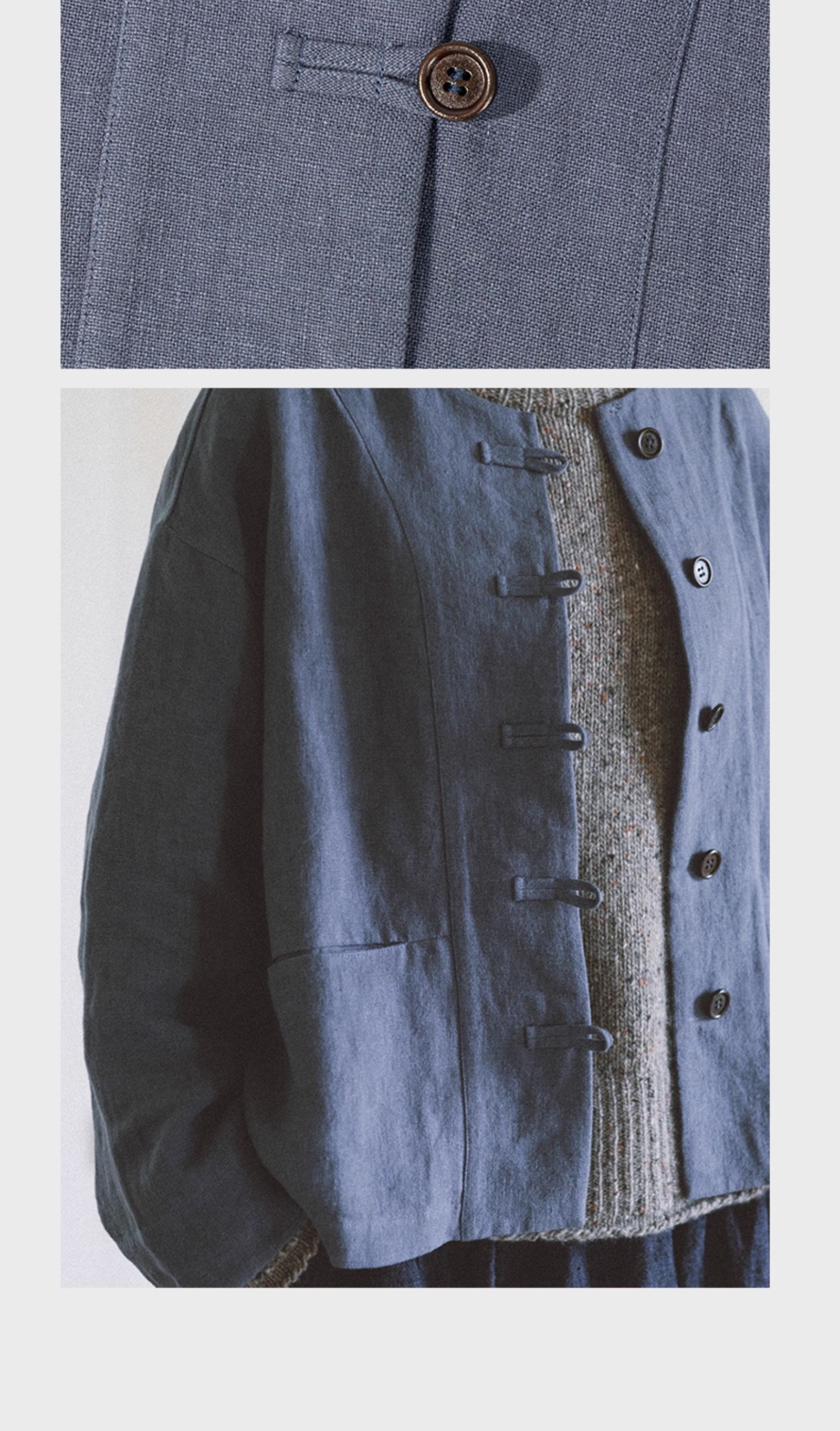 绽放775朵/落肩帅气短外套·纯亚麻新中式外套女2025新款百搭上衣