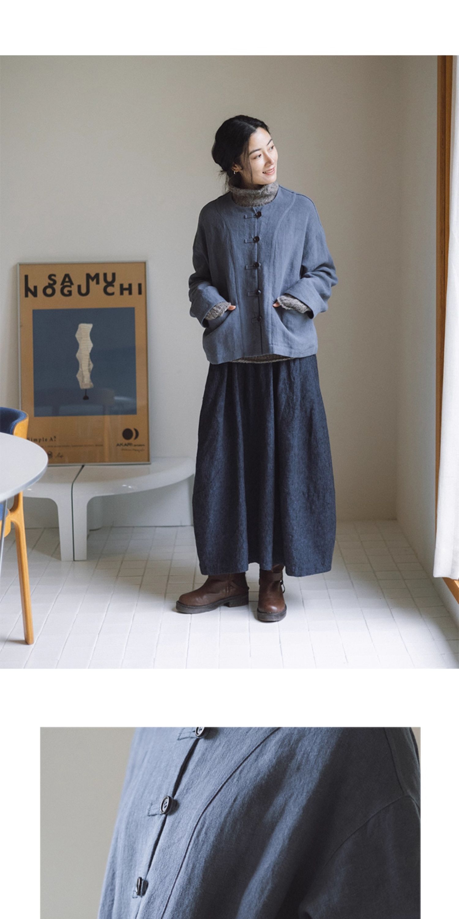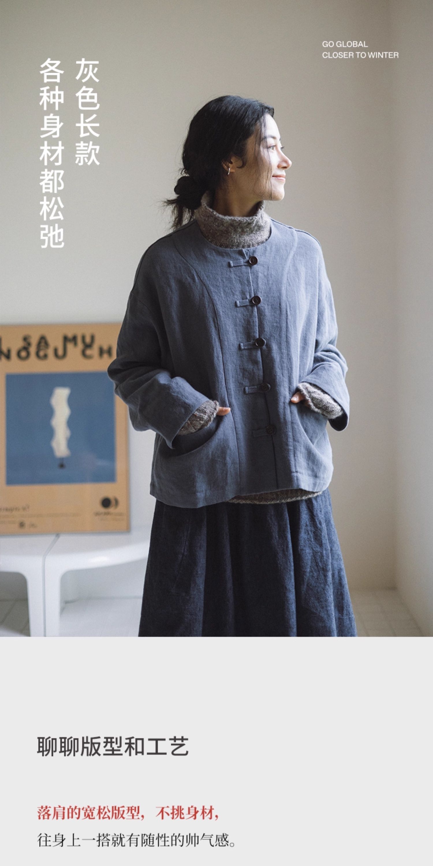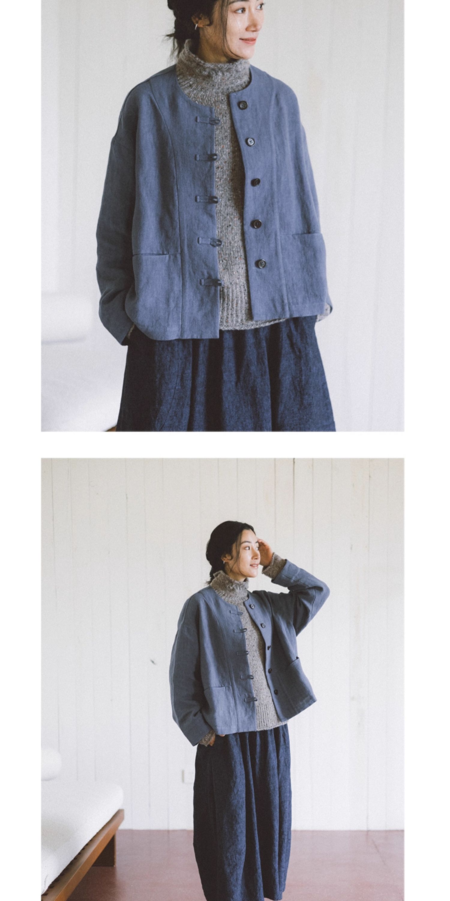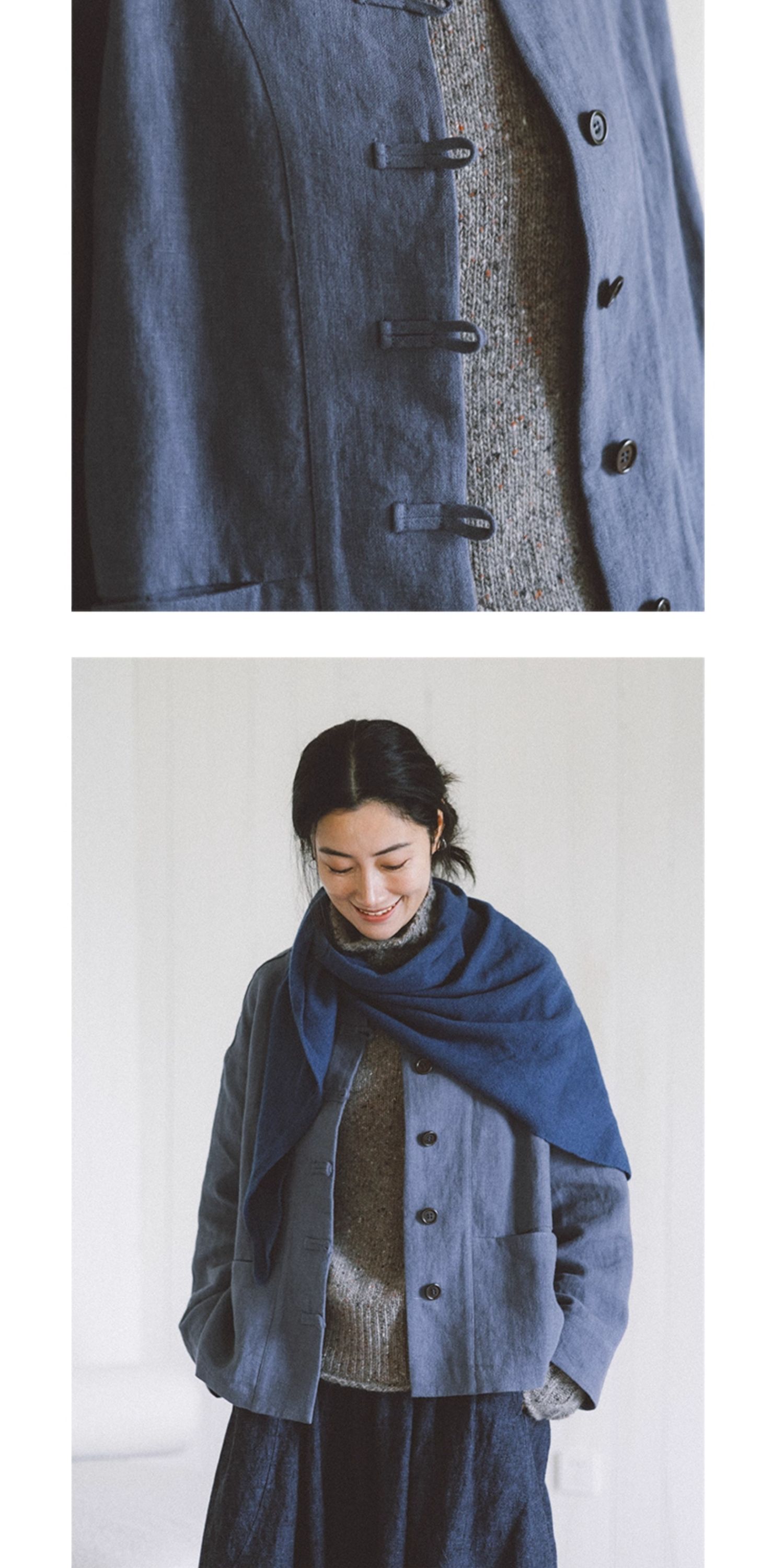 绽放775朵/落肩帅气短外套·纯亚麻新中式外套女2025新款百搭上衣