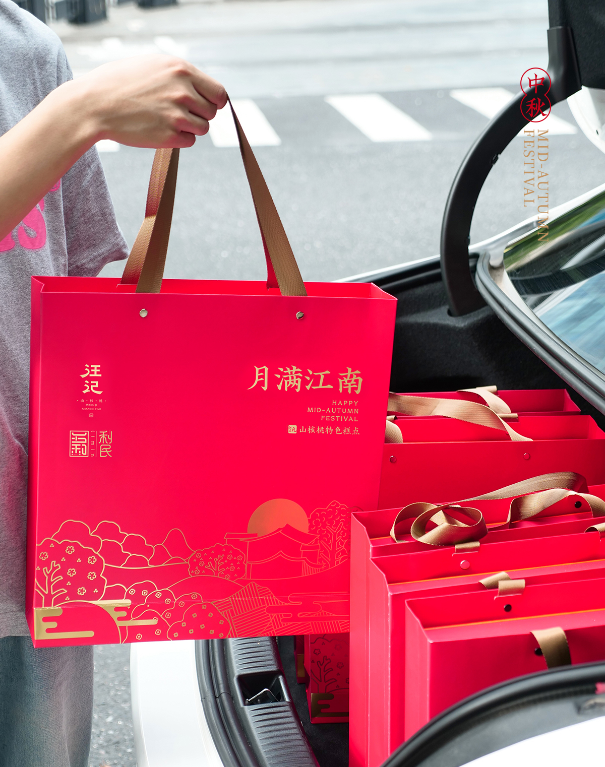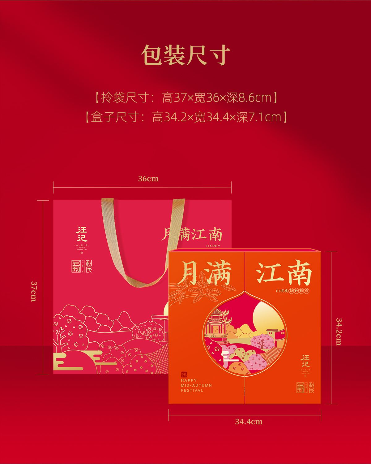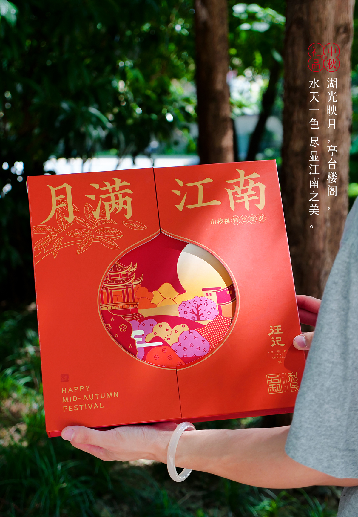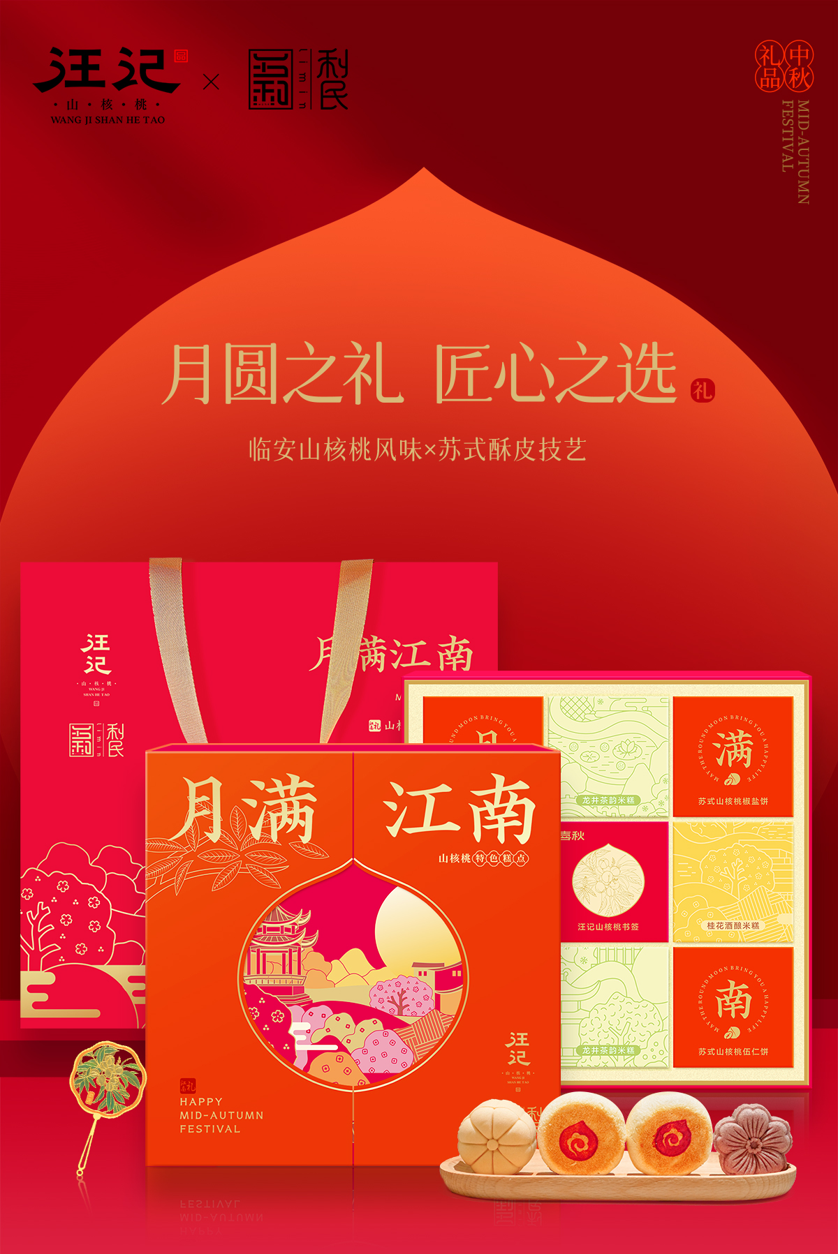 【中秋礼盒】汪记月满江南中秋糕点礼盒苏式山核桃饼内置书签文创净重400g