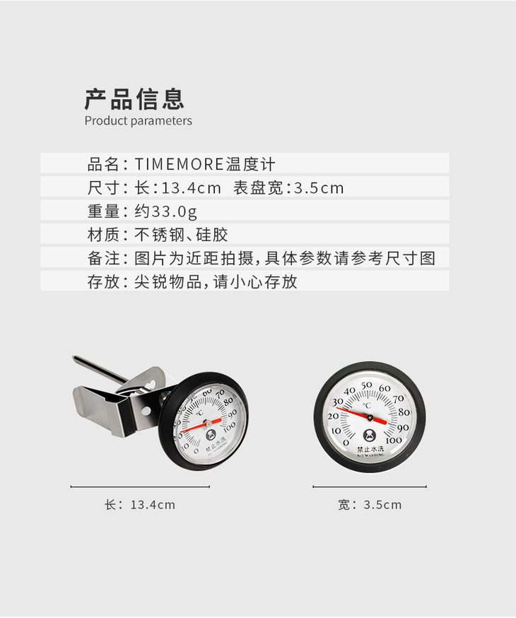 TIMEMORE泰摩 手动煮咖啡温度计 牛奶 咖啡拉花使用 笔式可夹指针