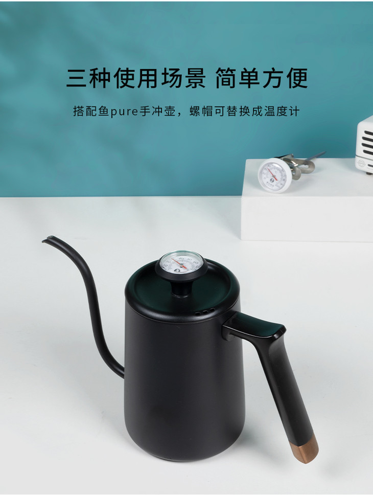 泰摩 鱼Pure手冲壶 304不锈钢滴漏式家用长嘴细口壶 冲挂耳咖啡壶