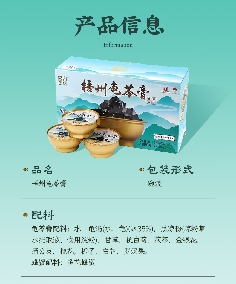 【山姆同款】梧州龟苓膏金碗礼盒配独立蜂蜜包220g*12碗