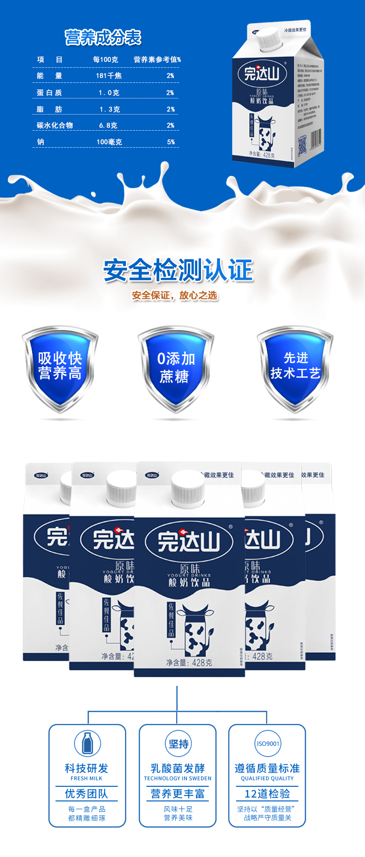 完达山佐餐佳品原味酸奶饮品 428g*12盒