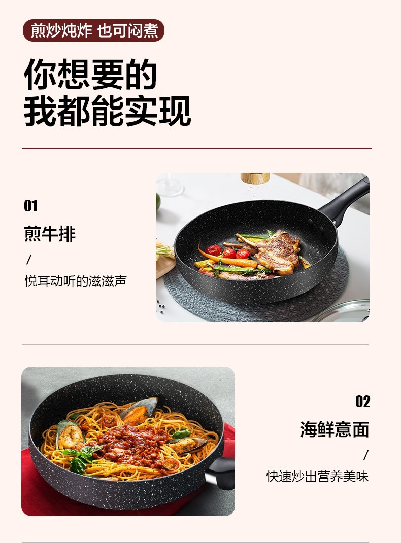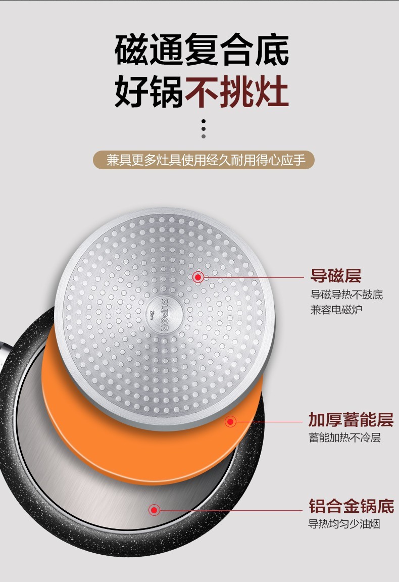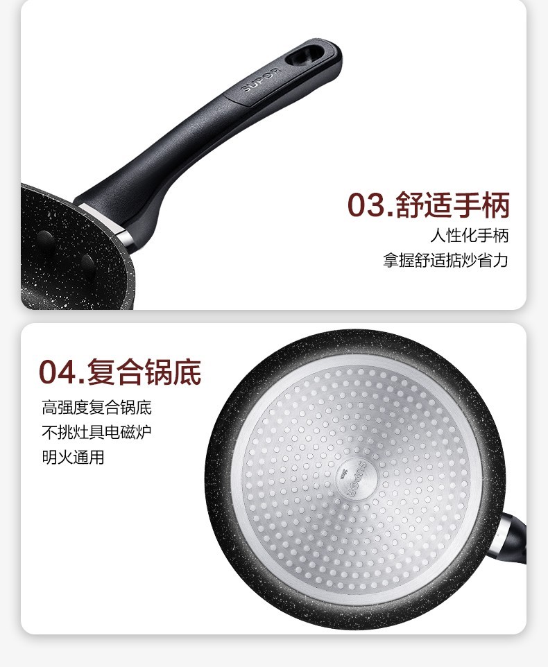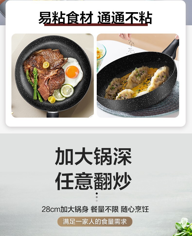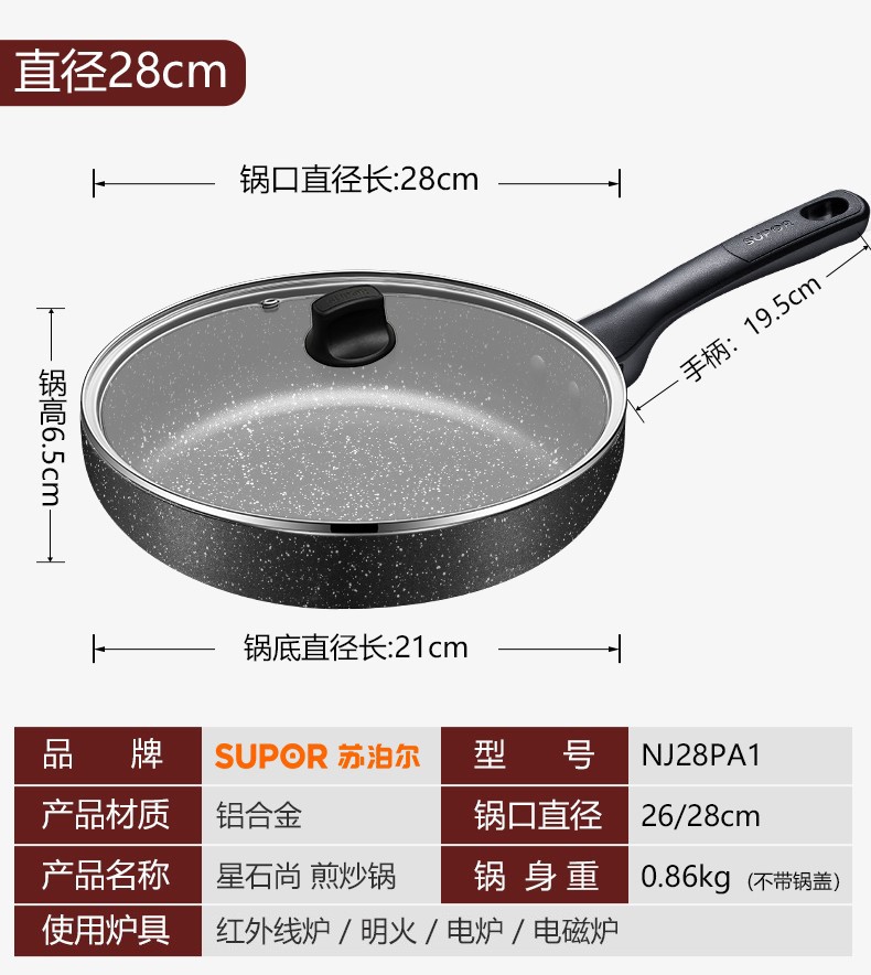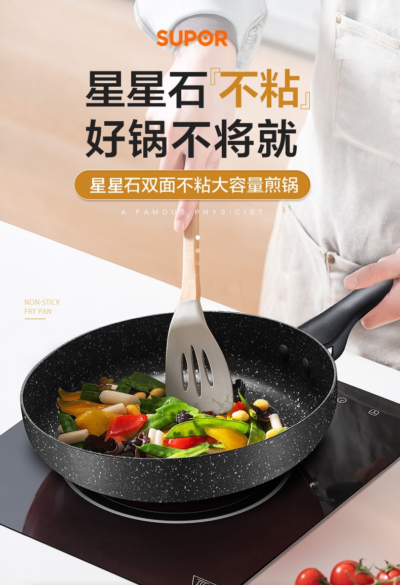 苏泊尔(SUPOR)煎锅双面星星石平底锅不粘锅煎蛋锅牛排锅炒菜锅电磁炉燃气通用 28厘米 NJ28PA1
