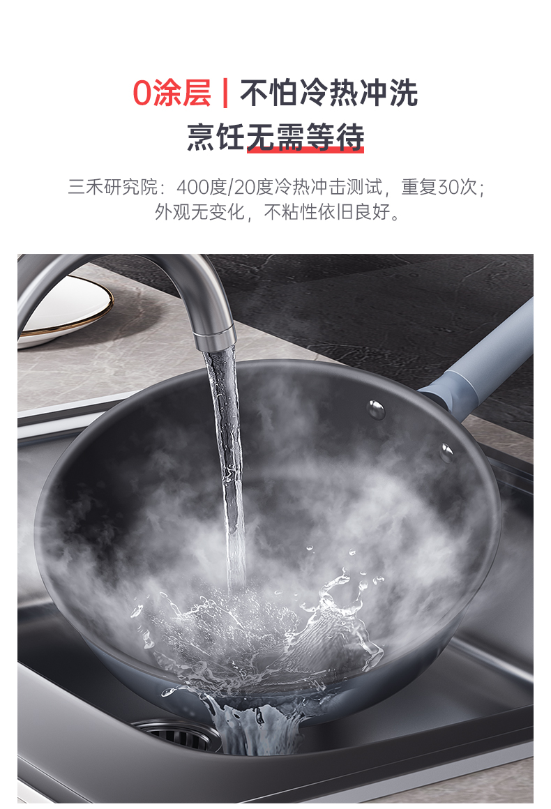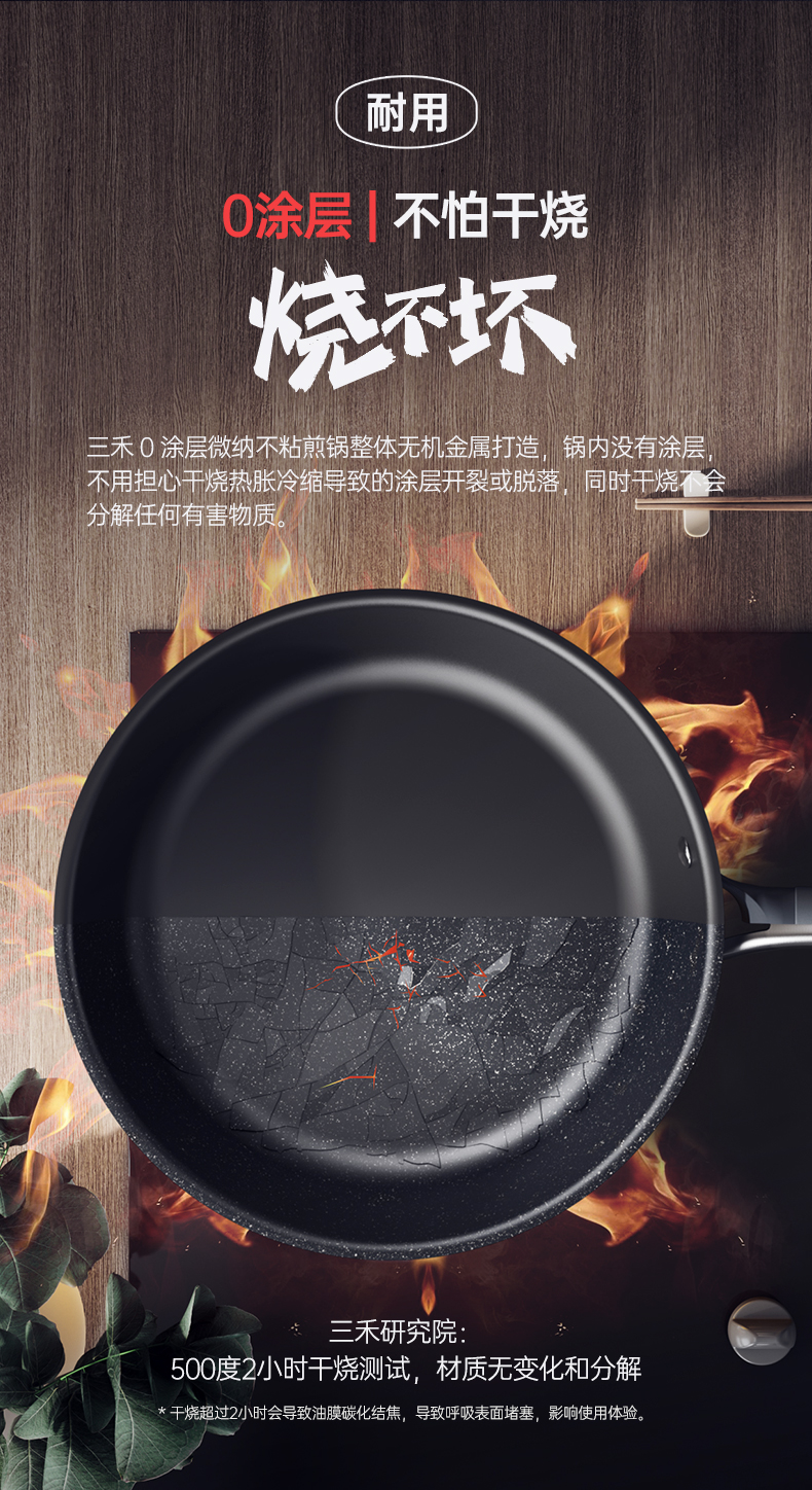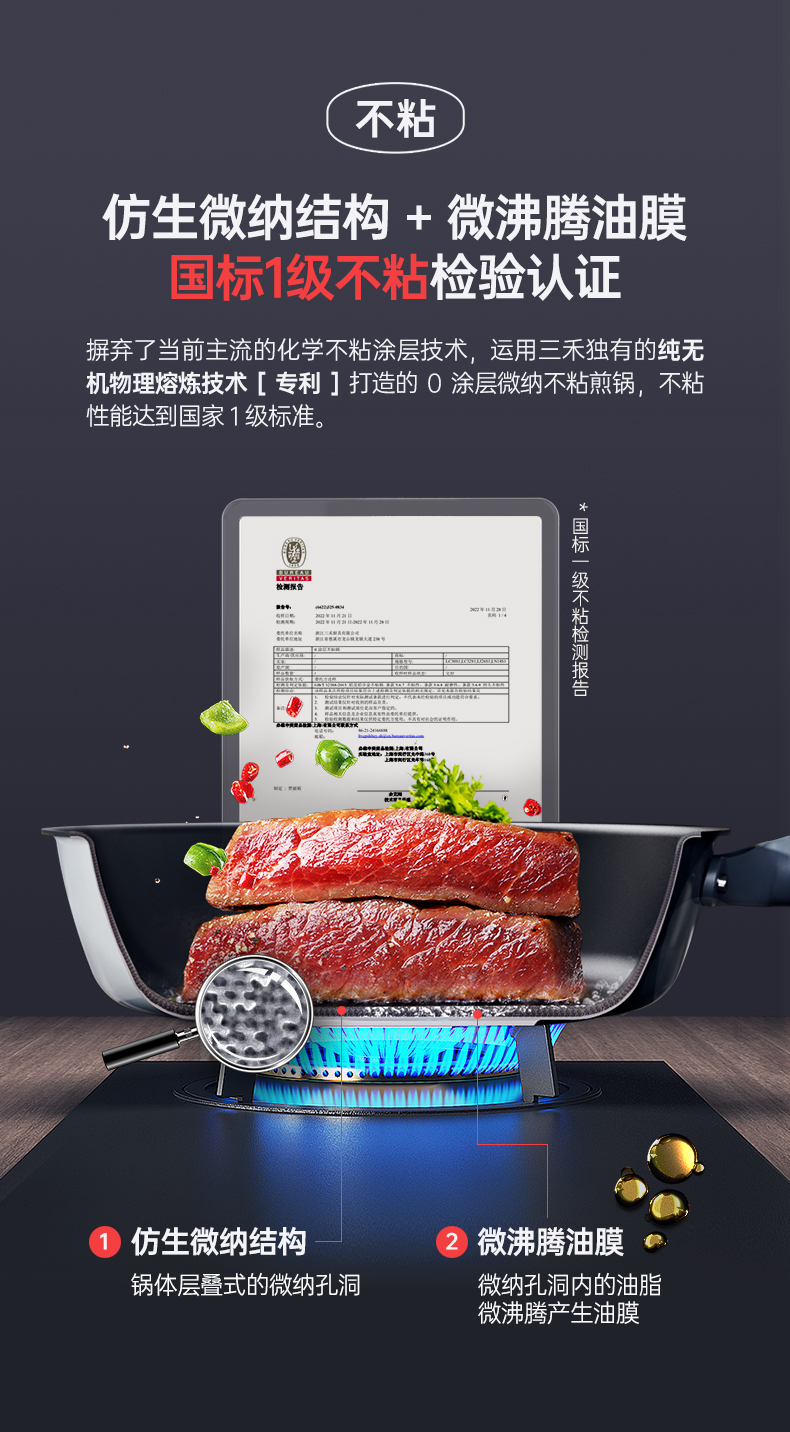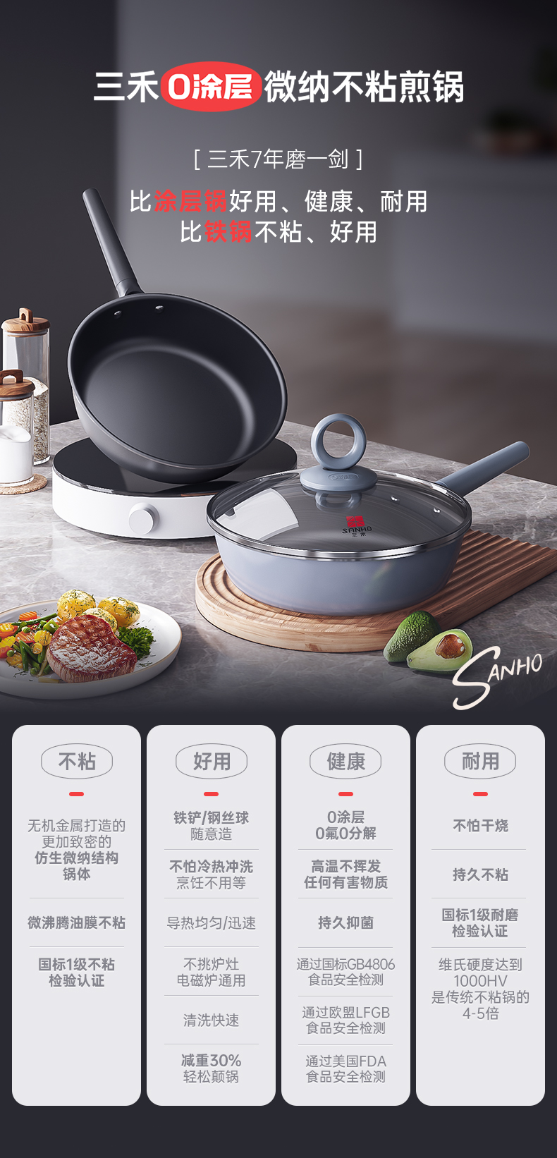 三禾0涂层微纳不粘煎锅平底锅无涂层家用平底煎锅煎蛋锅26寸