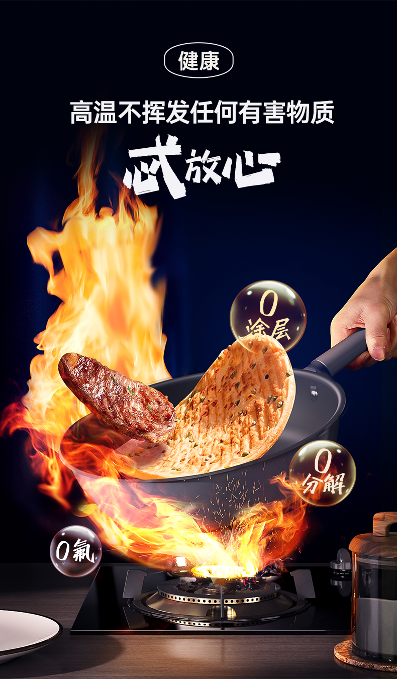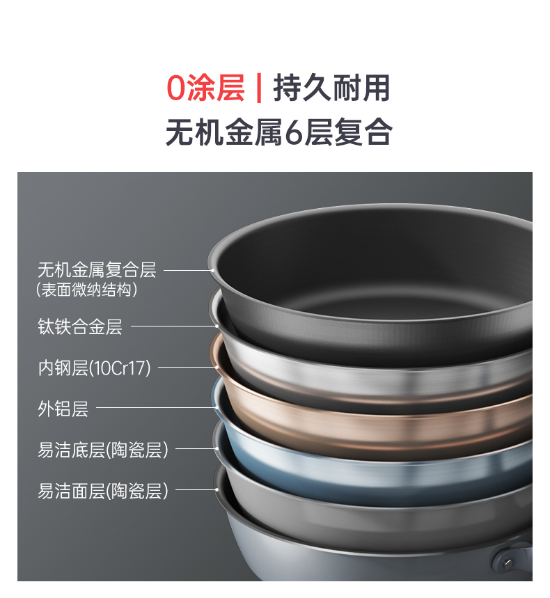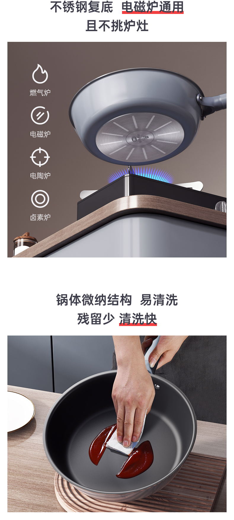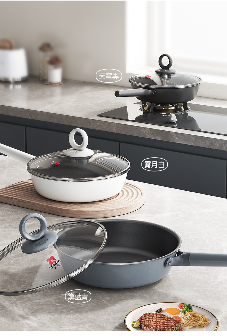 三禾0涂层微纳不粘煎锅平底锅无涂层家用平底煎锅煎蛋锅26寸