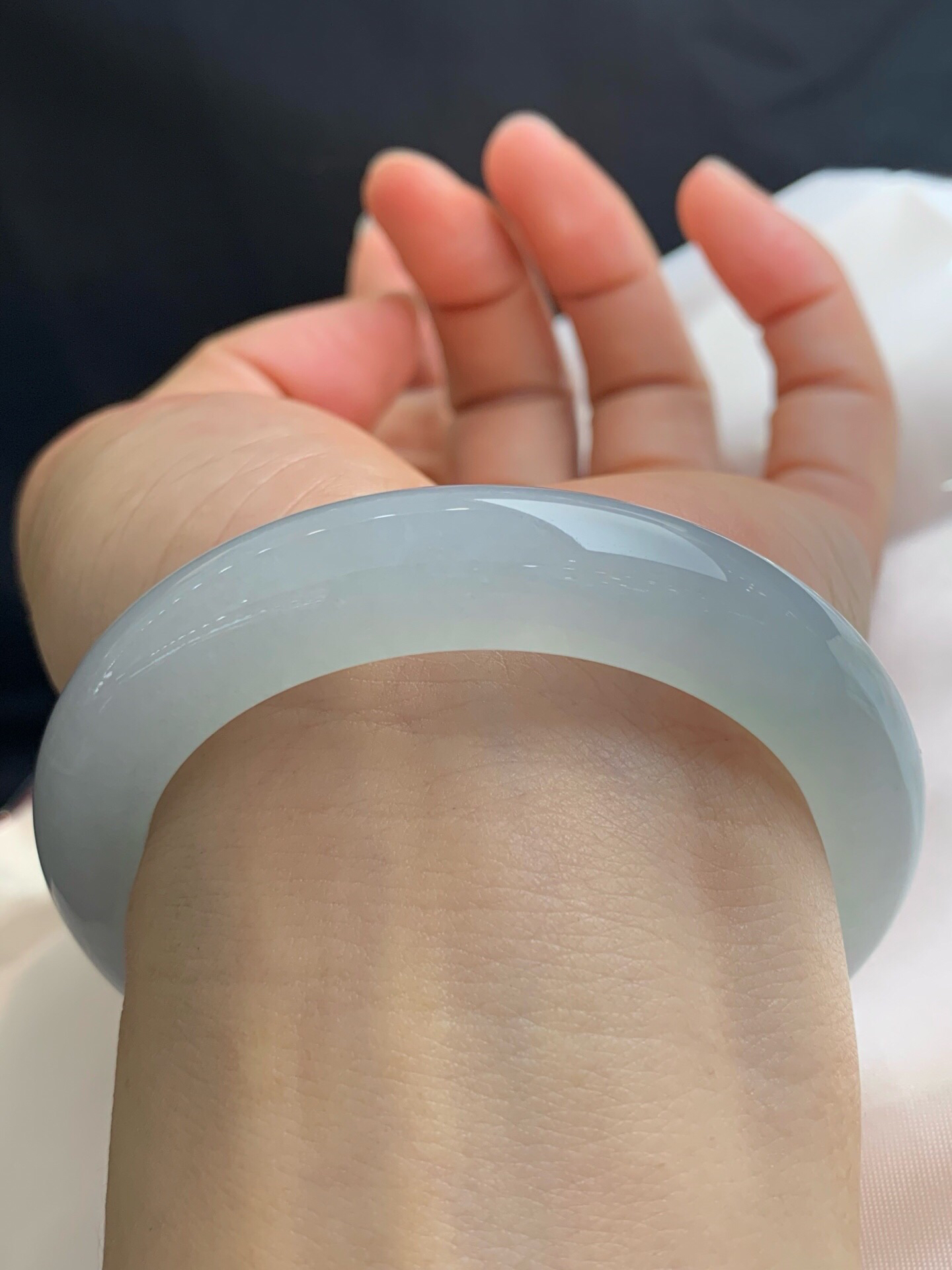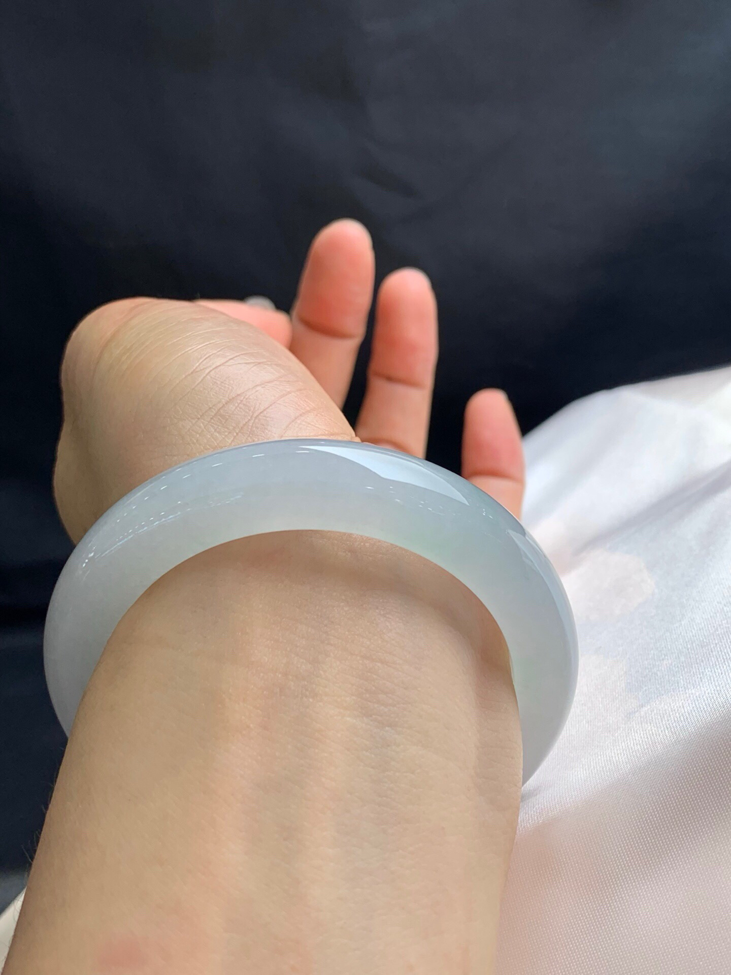 620643,54.7圈口,冰晴正圈平安镯,淡晴水底色,种水好有光感,完美,尺寸:54.7-11.8-9.5,超值价💰73500 #优石客珠宝#香玉荟萃