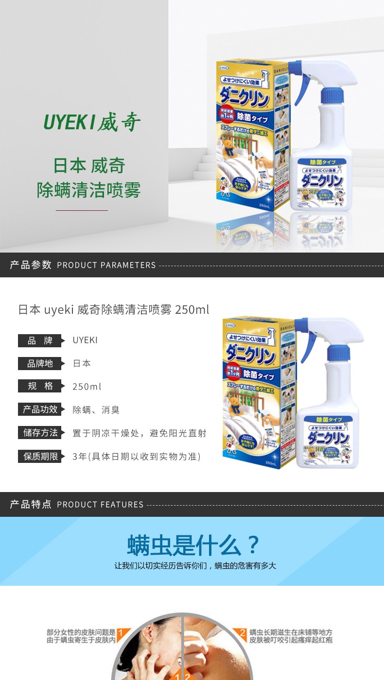 积分兑 · 4款可选 · 日本UYEKI 除螨抑制螨虫喷剂 除螨除菌消臭(孕婴可用)250ml|品牌直发
