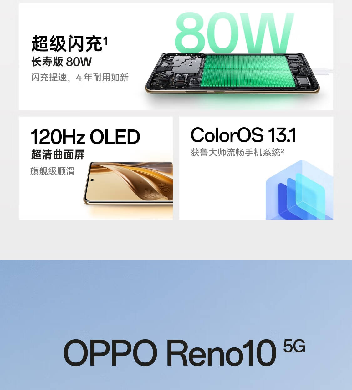 OPPO Reno10 超光影长焦镜头6400 万水光人像80W闪充 120Hz OLED 超清曲面屏 5G手机