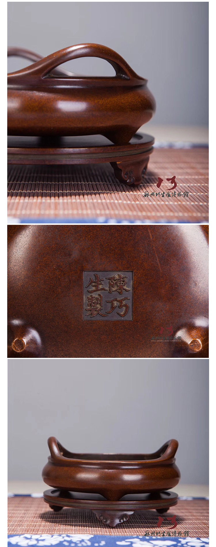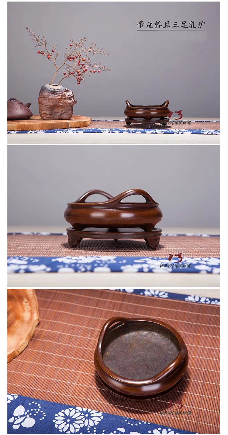 陈巧生制带座桥耳三足乳炉 彦岐炉宣德炉香薰炉铜炉礼品