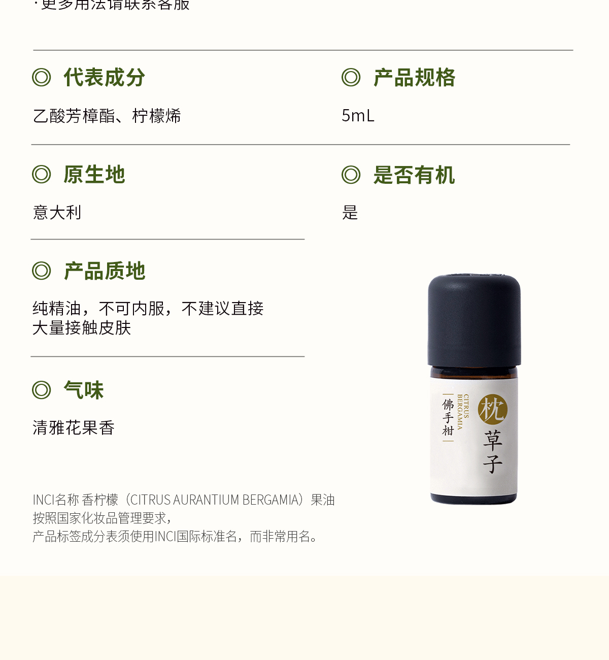 【枕草子】意大利【佛手柑】精油 招财佛手柑 欧盟有机认证 意大利枕草子柑橘家族 减压学生老师 油皮护肤