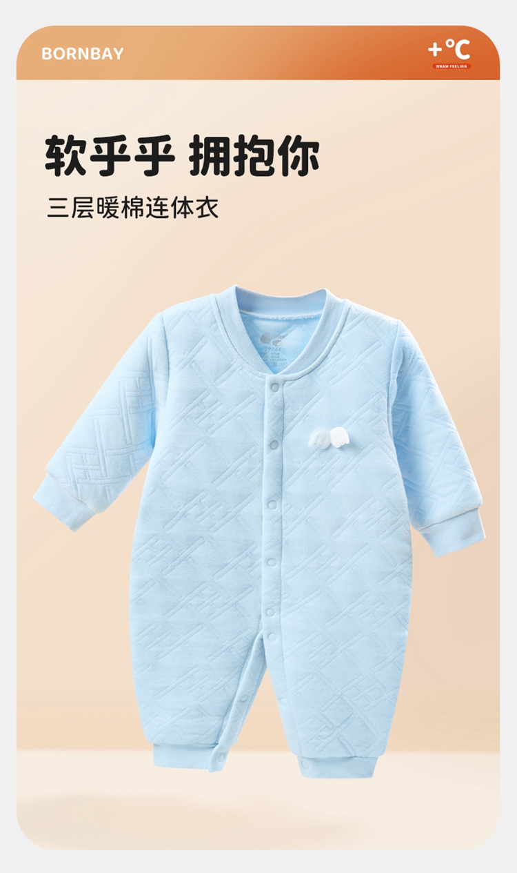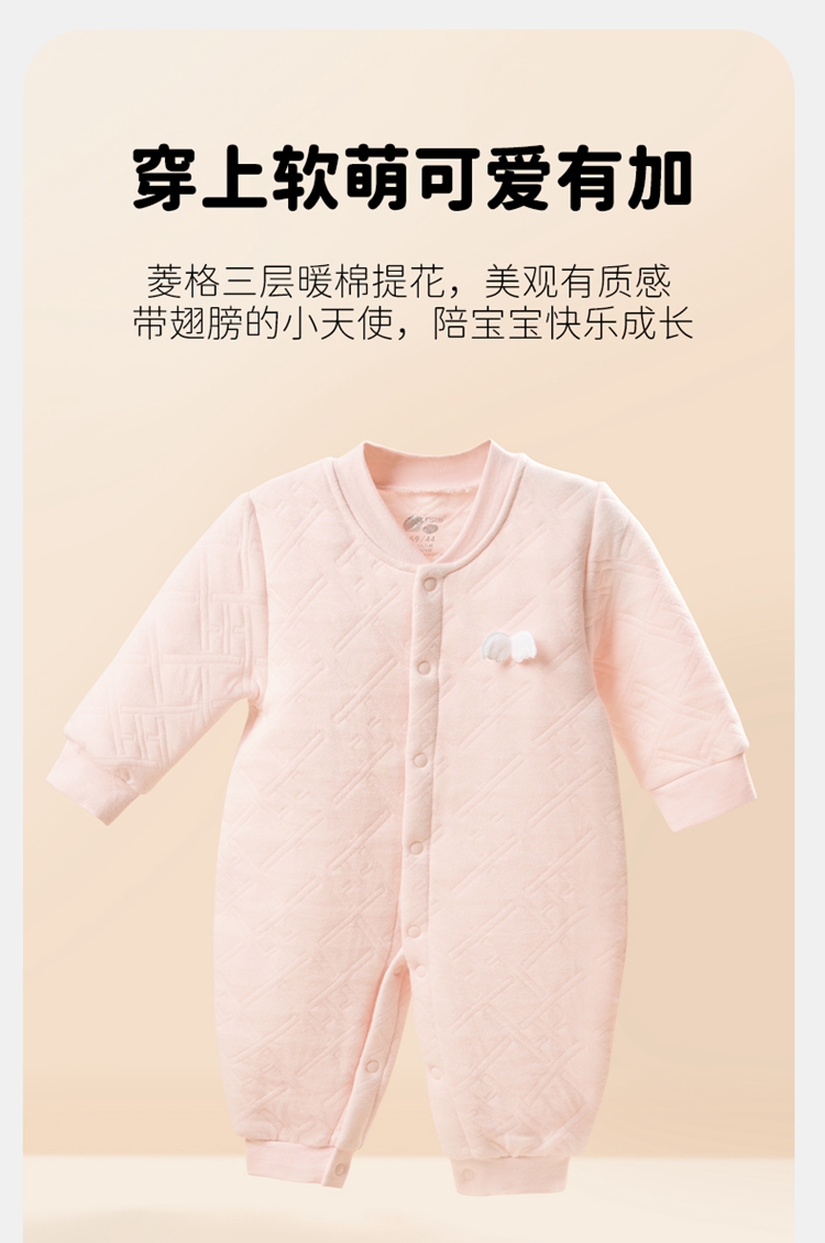 贝贝怡婴幼儿连体衣春秋保暖冬季夹棉新生儿男女宝宝打底哈衣爬服ZB4DL050