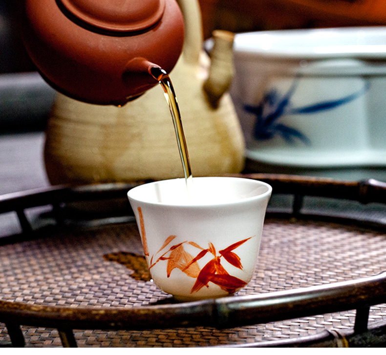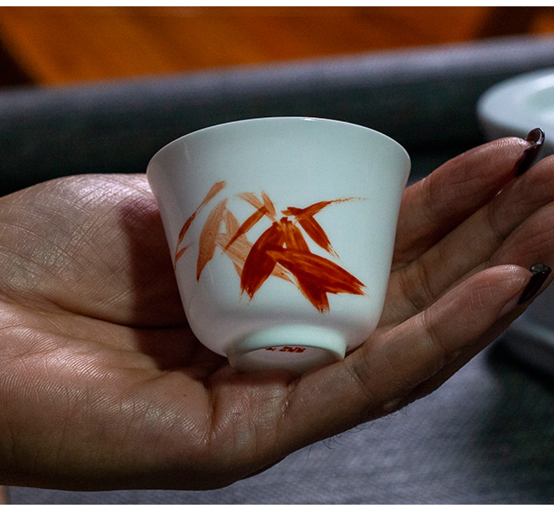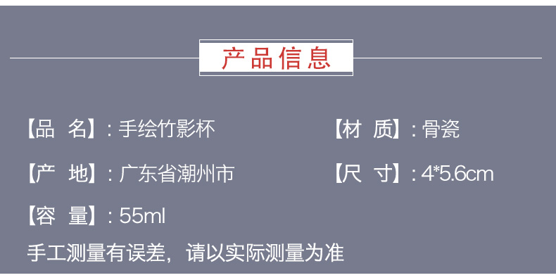 凡卉斋丨手绘竹影杯 骨瓷 茶杯 品茗杯 手绘 55ml 单杯