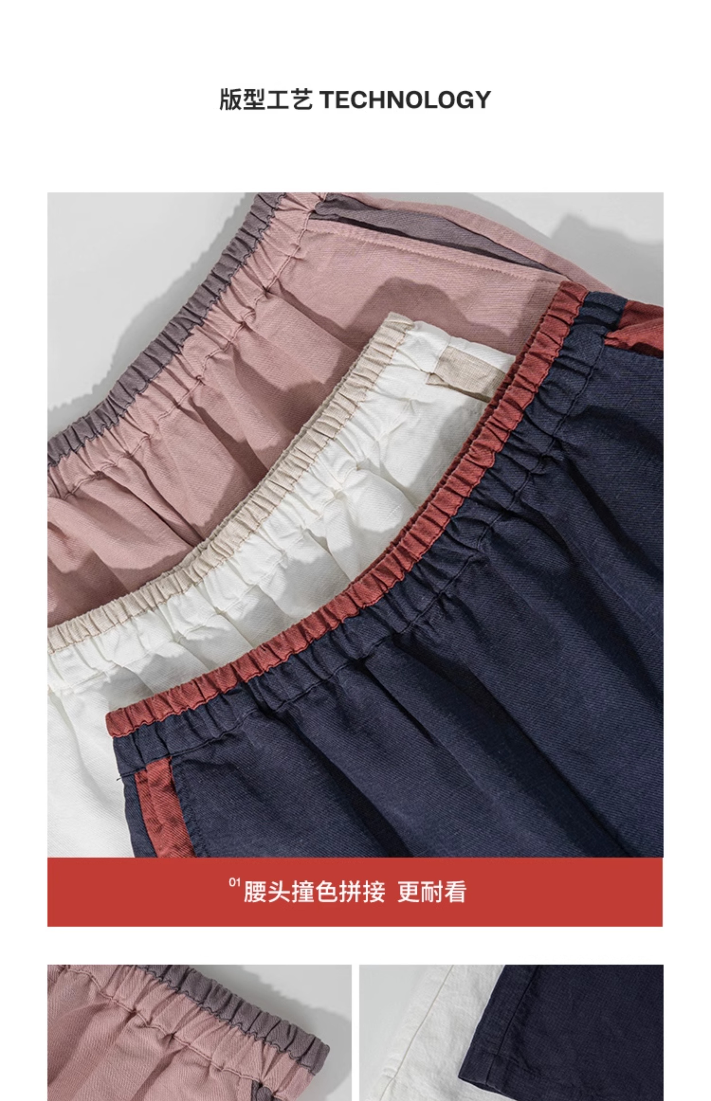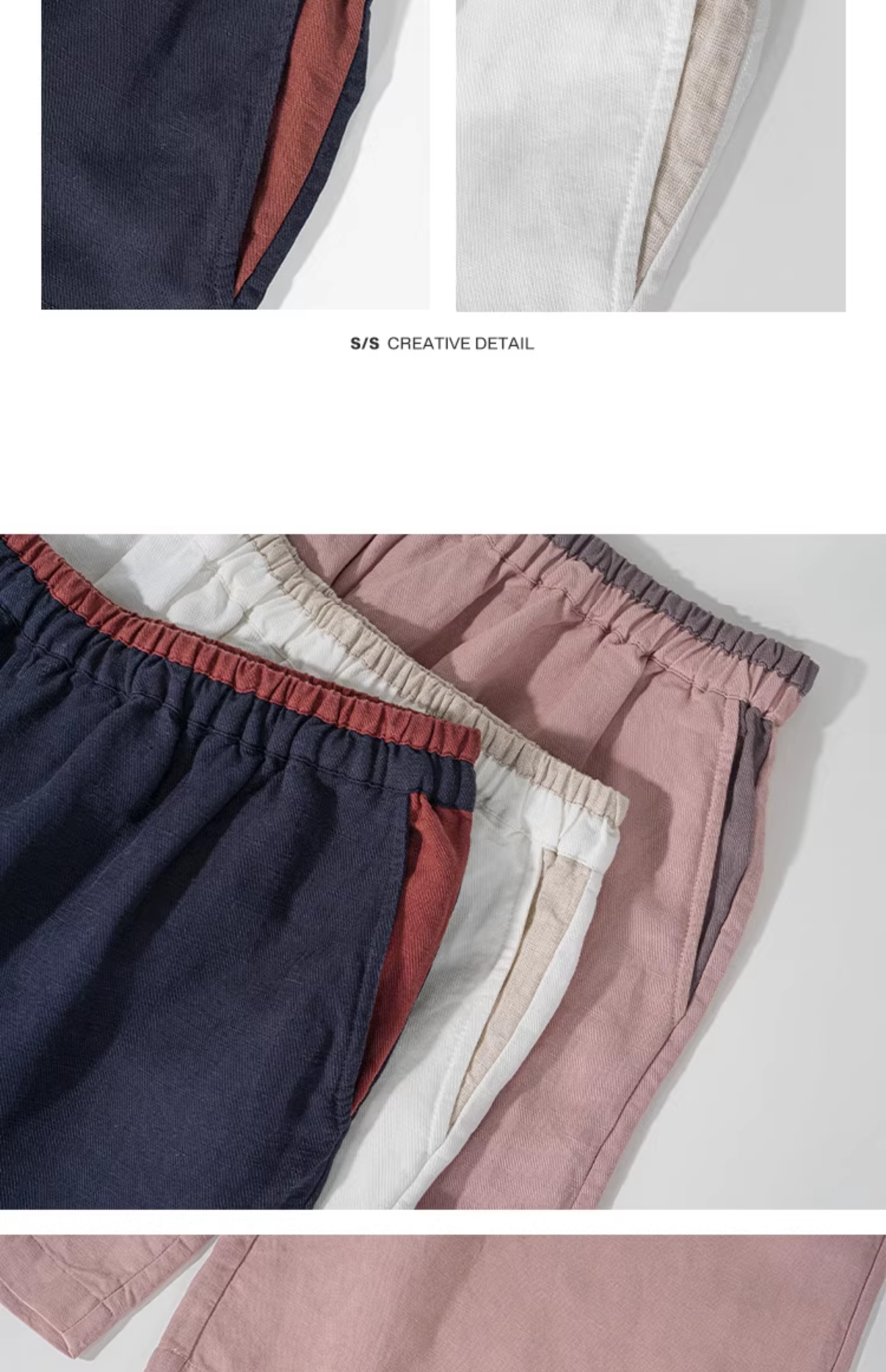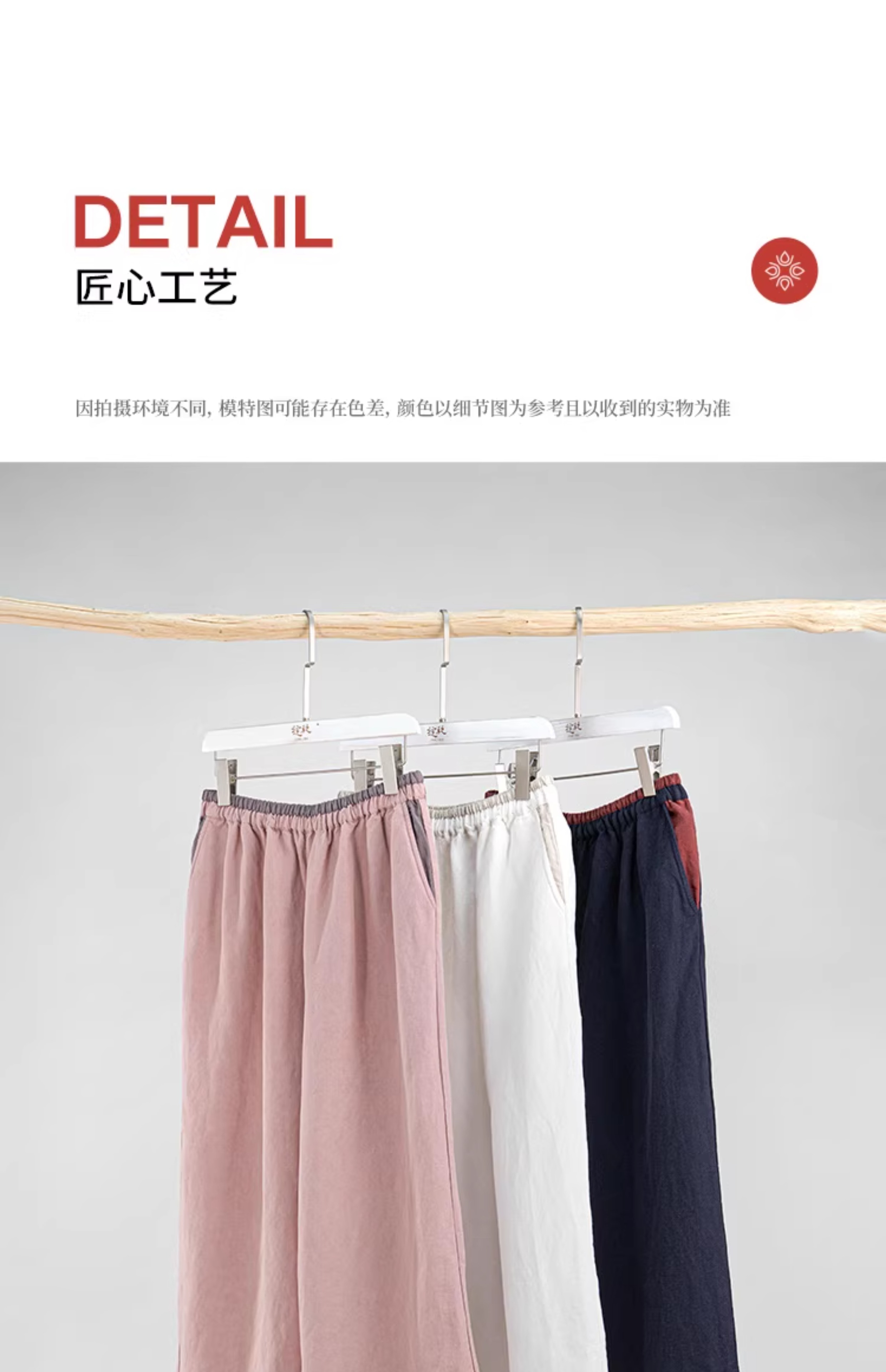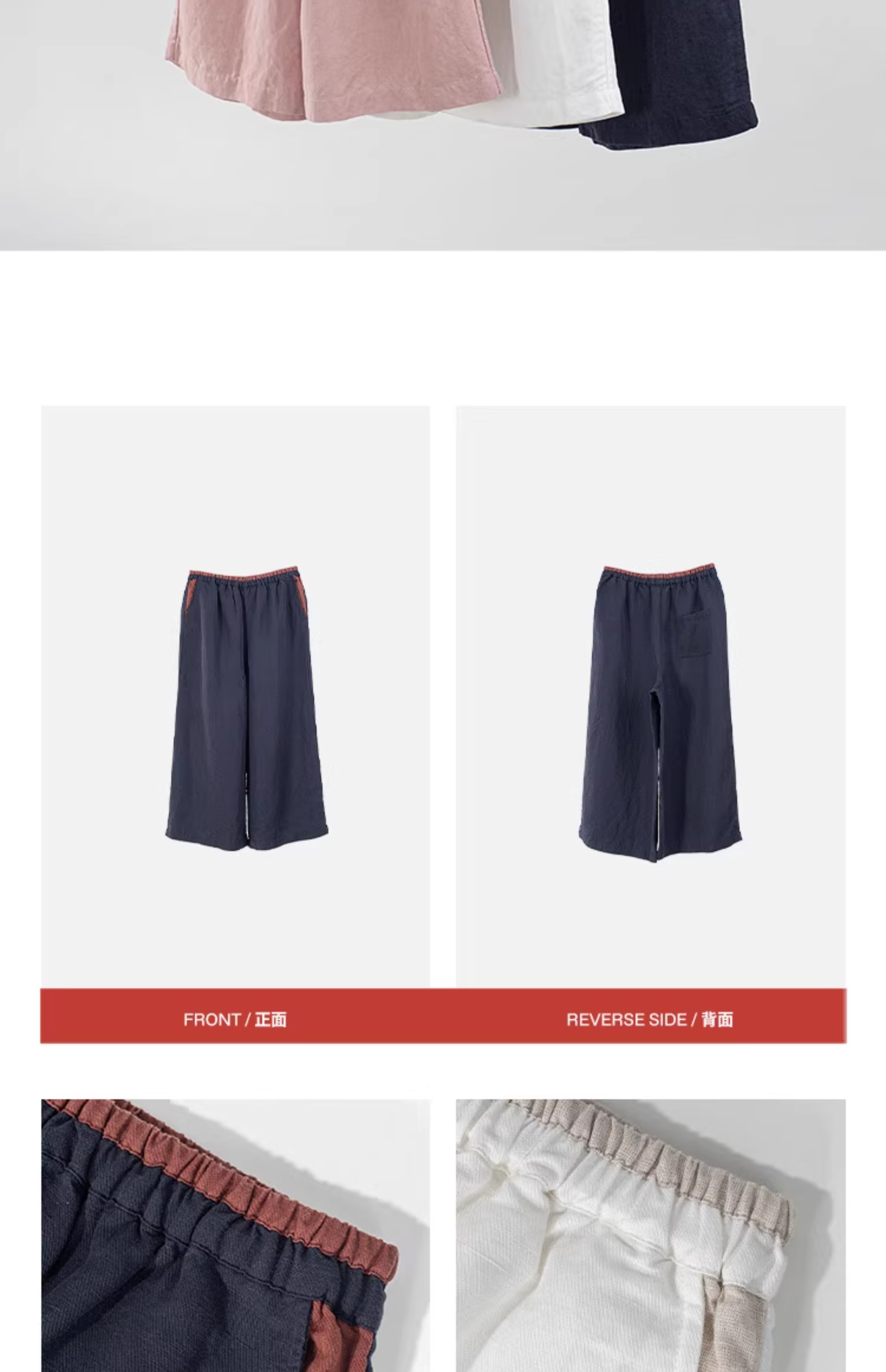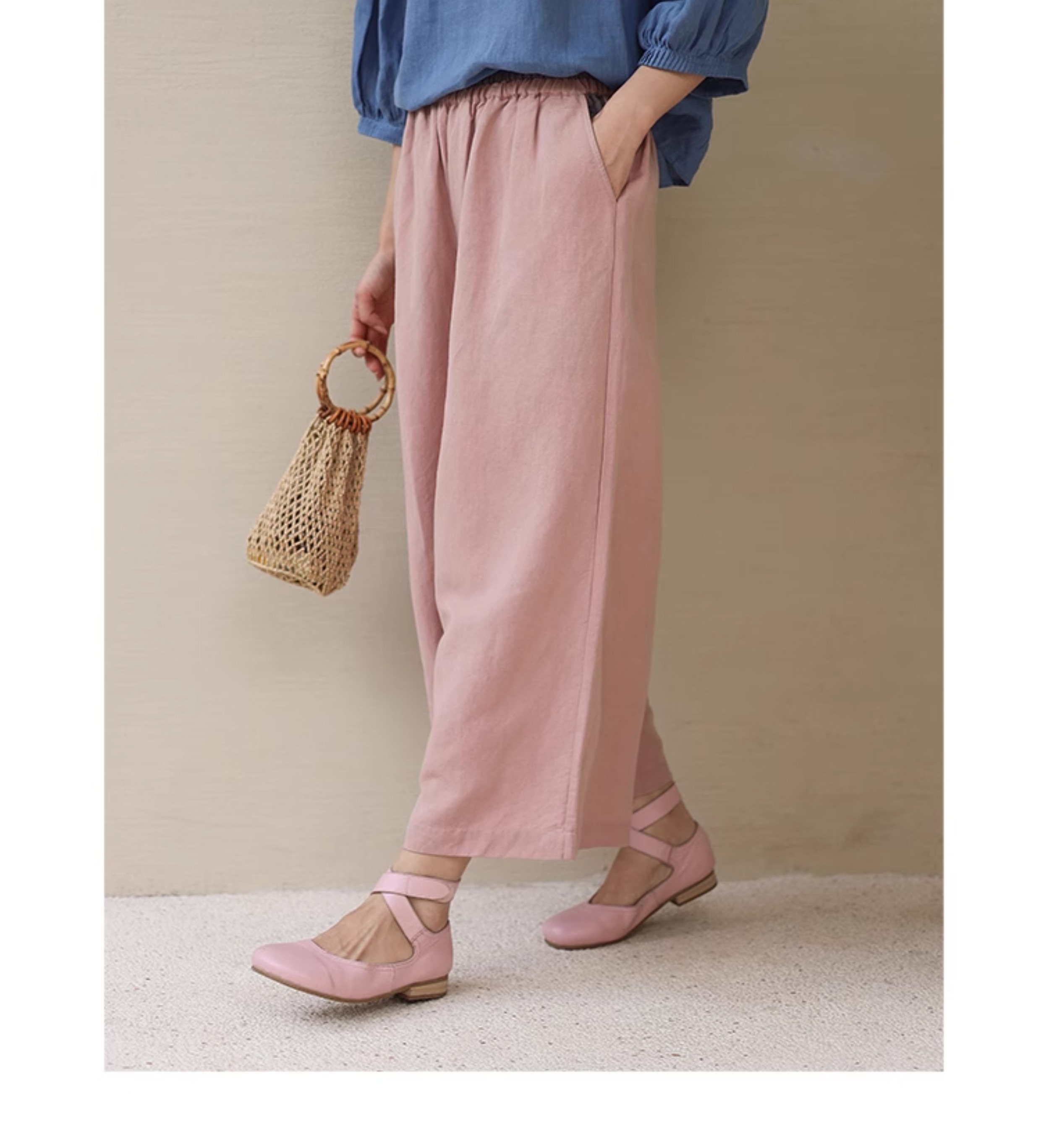 绽放旅行女装182朵/天丝亚麻拼色全腰松紧内加抽绳舒适阔腿九分裤