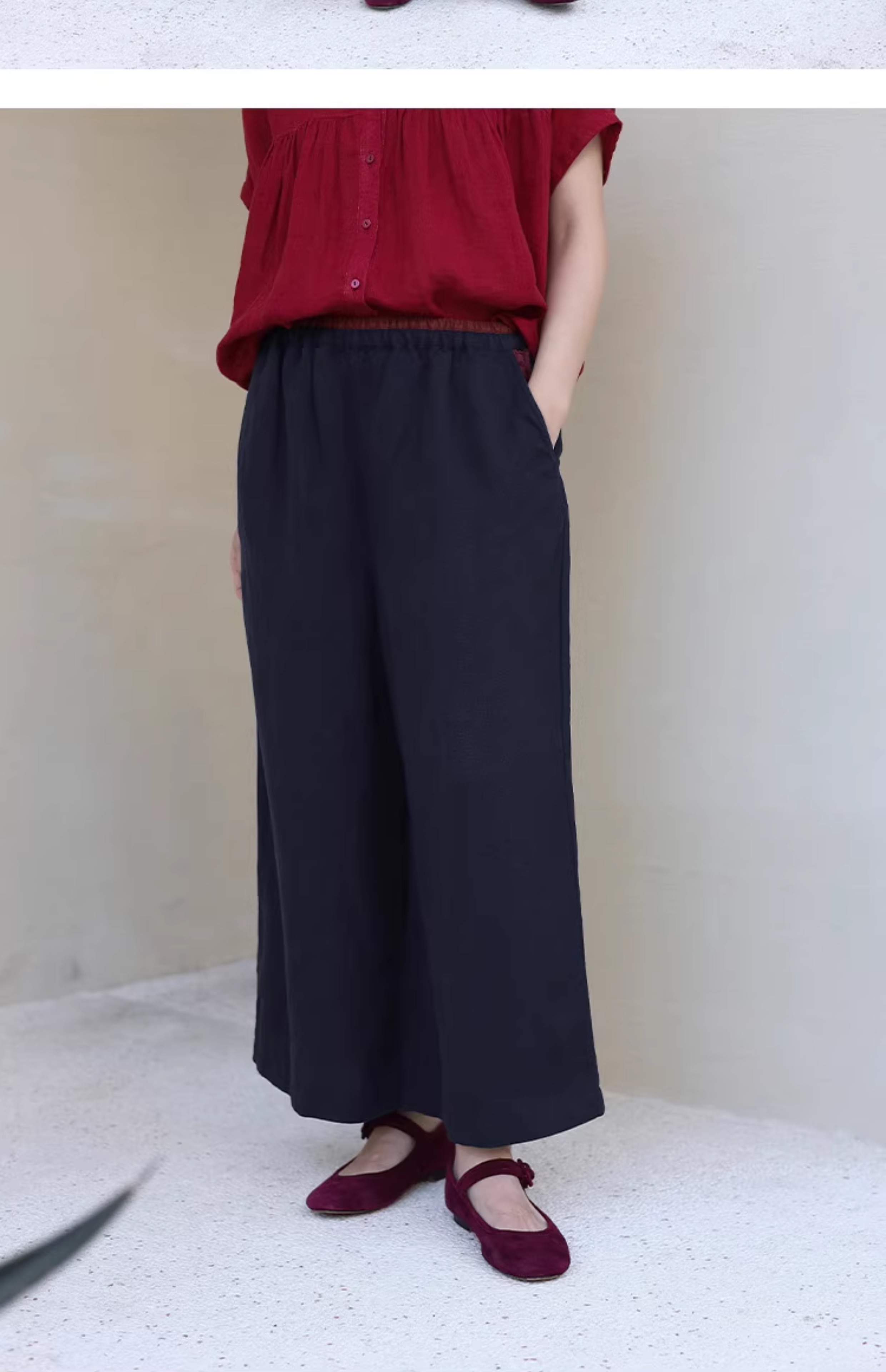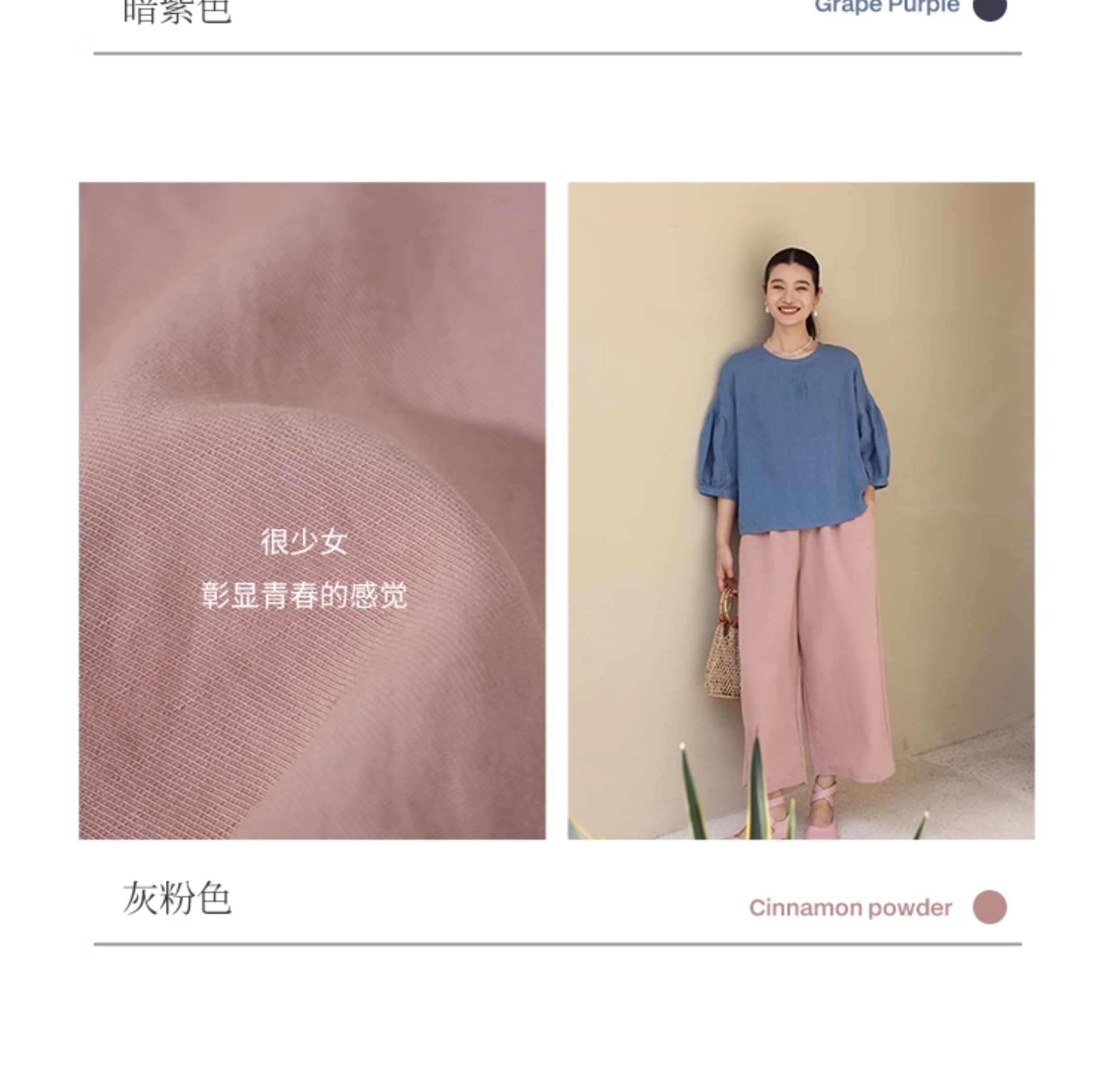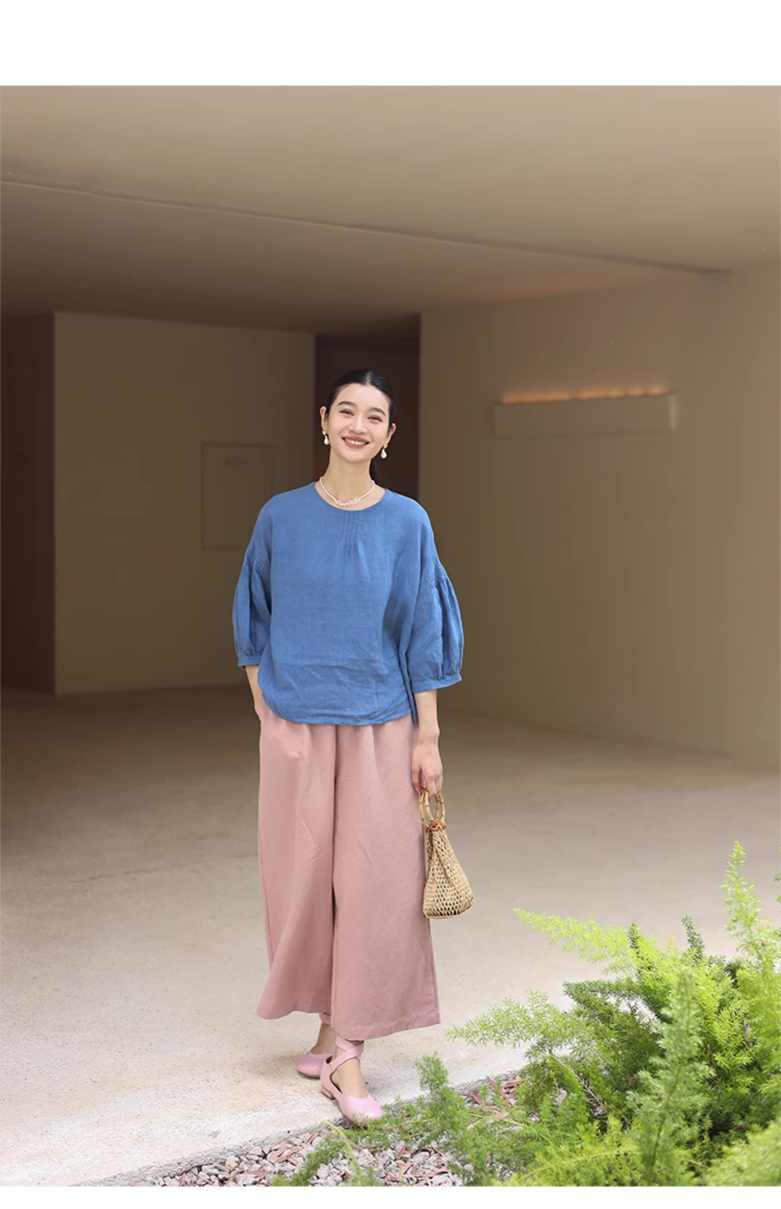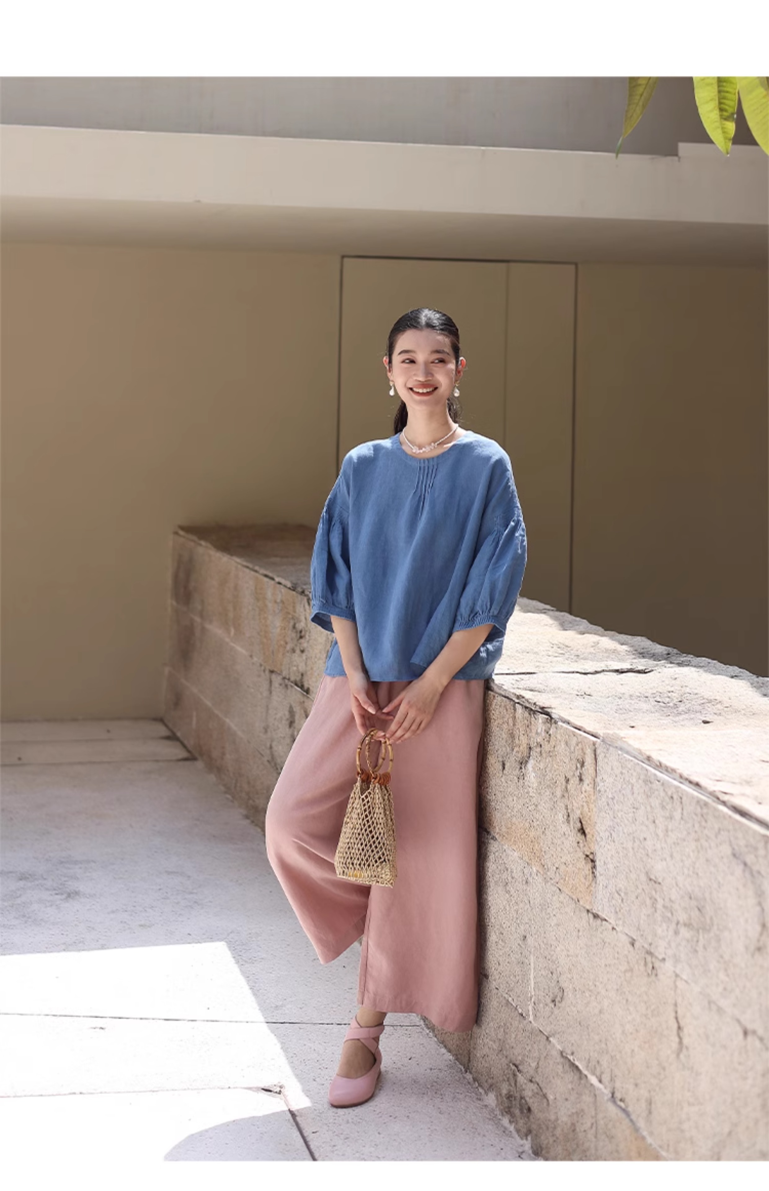 绽放旅行女装182朵/天丝亚麻拼色全腰松紧内加抽绳舒适阔腿九分裤