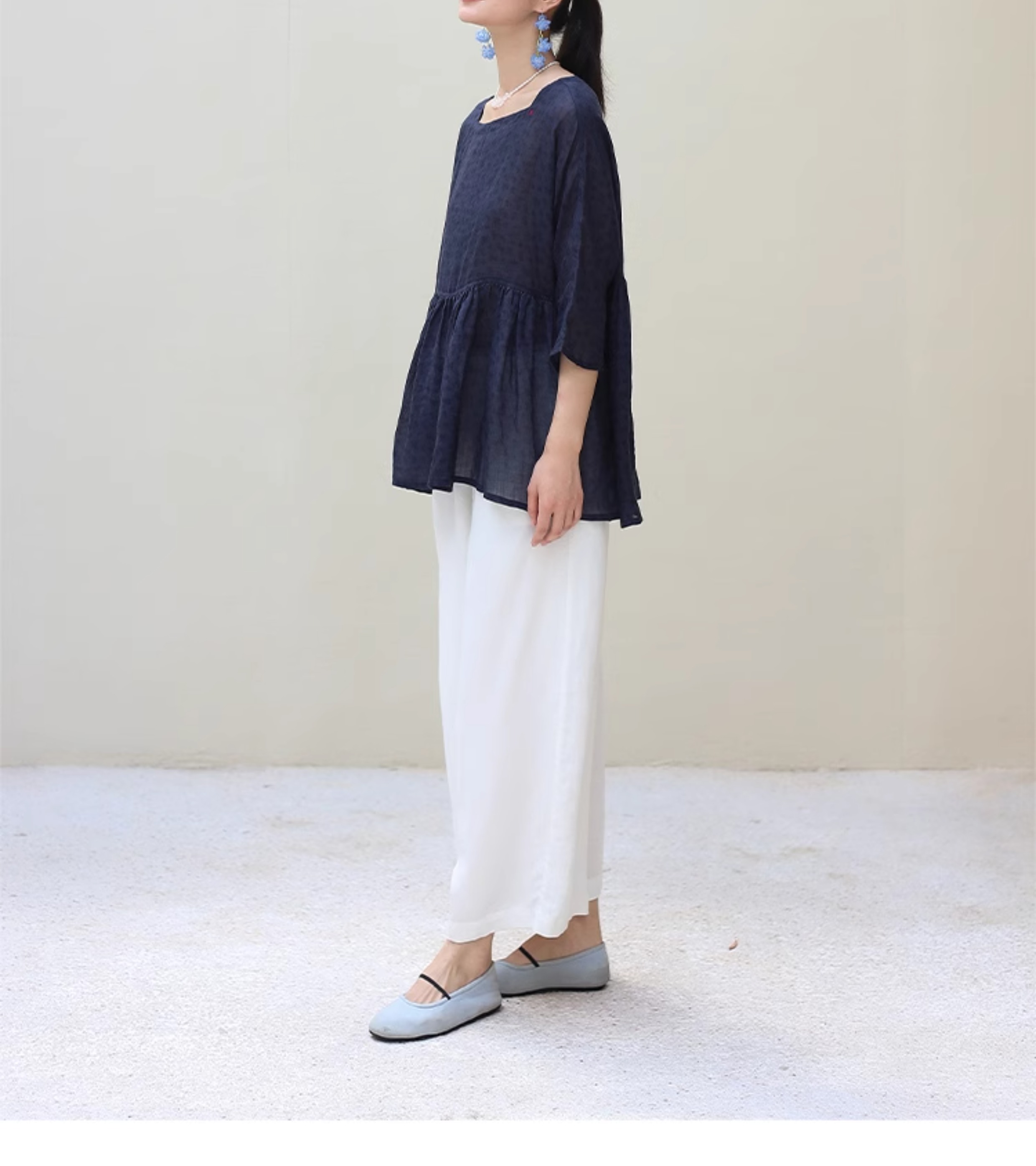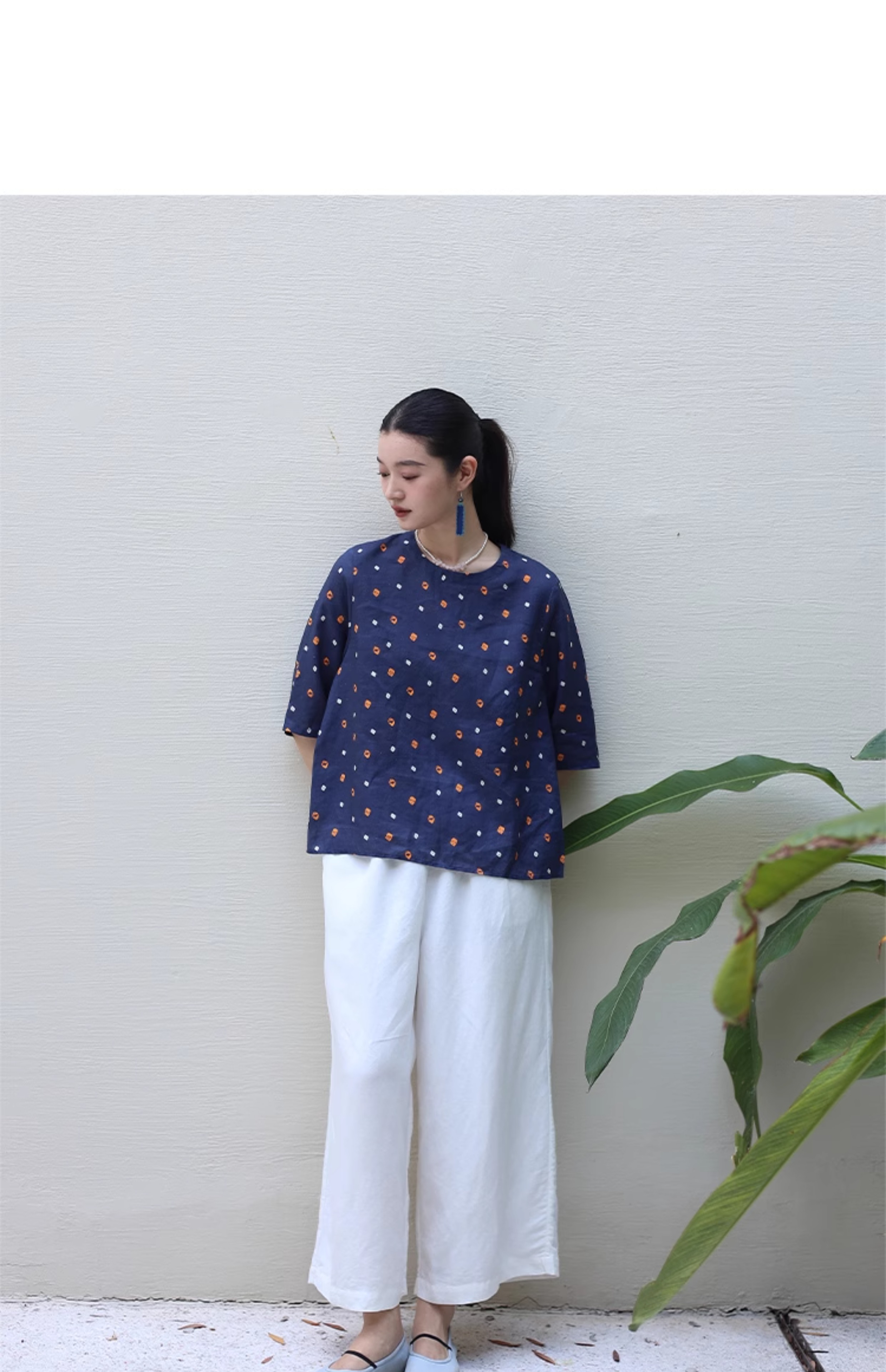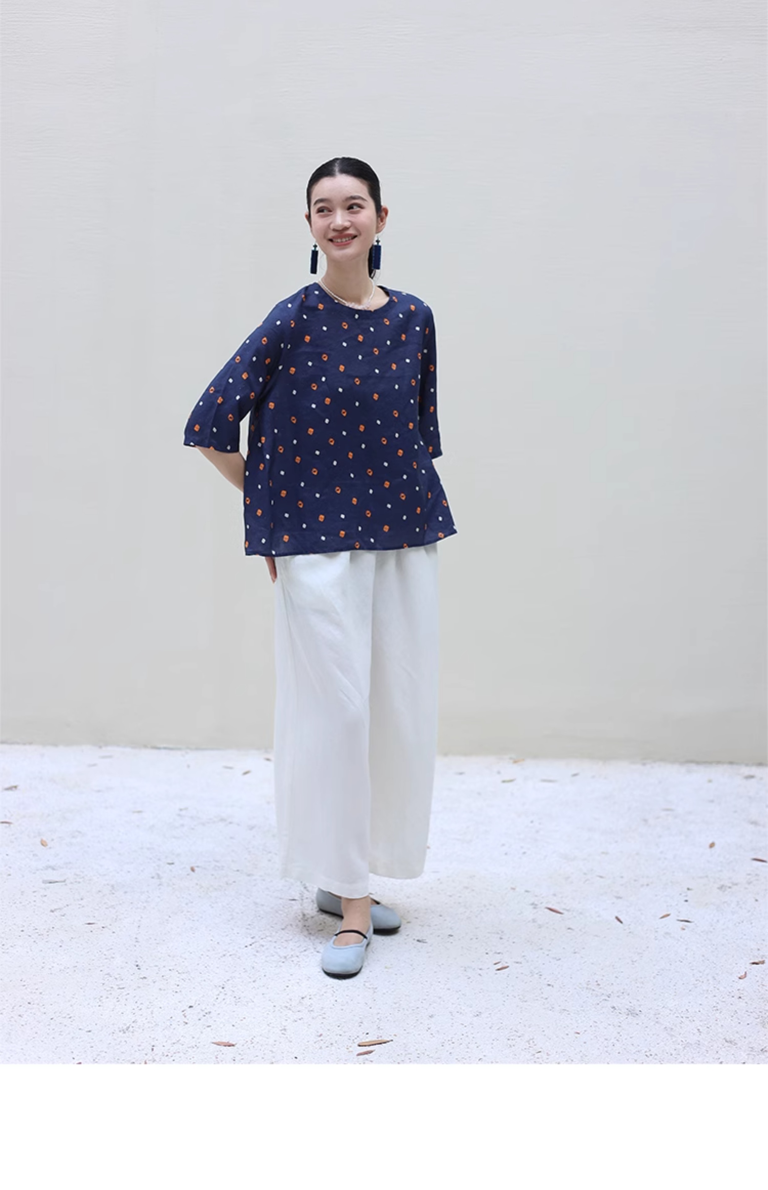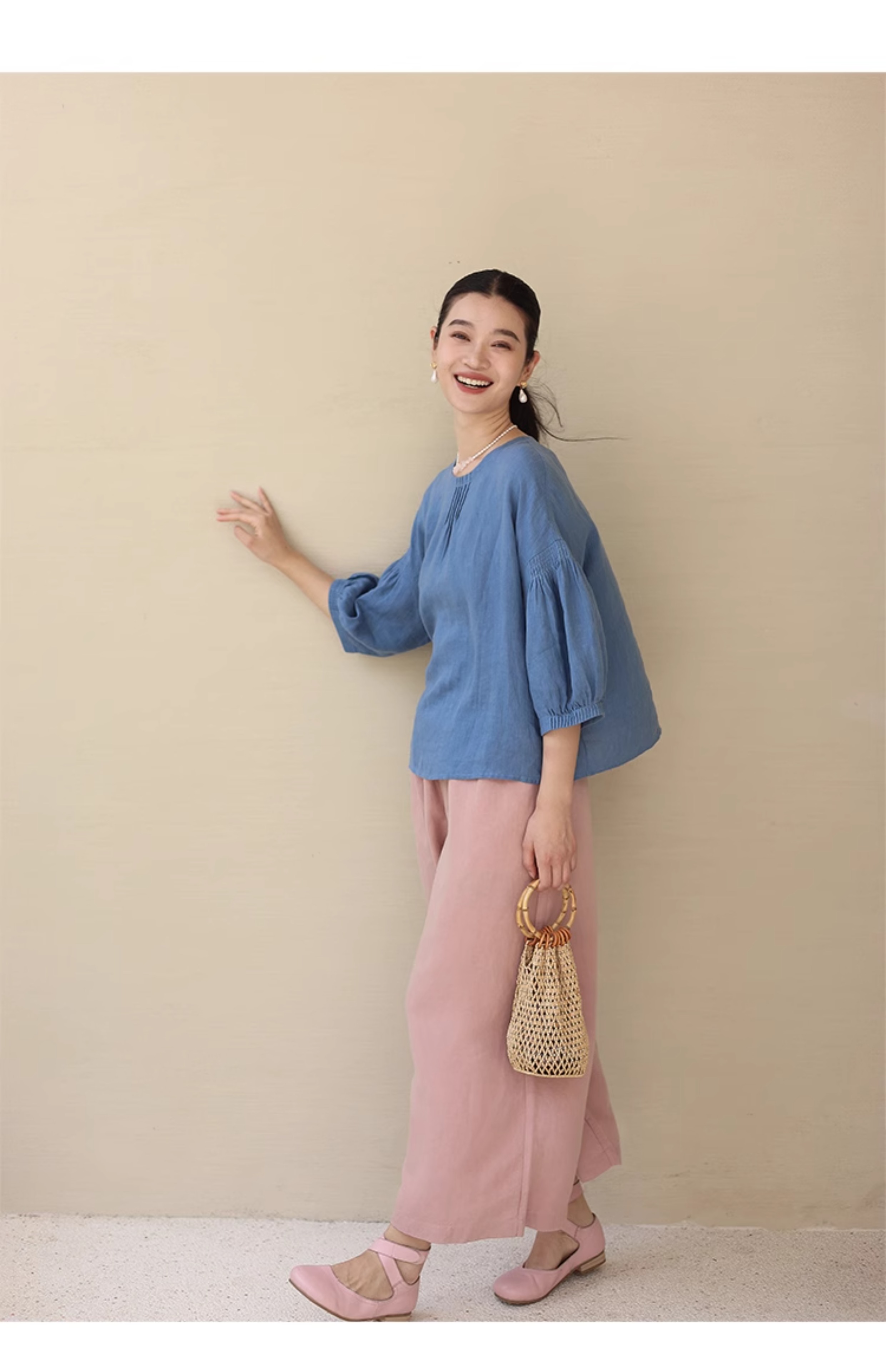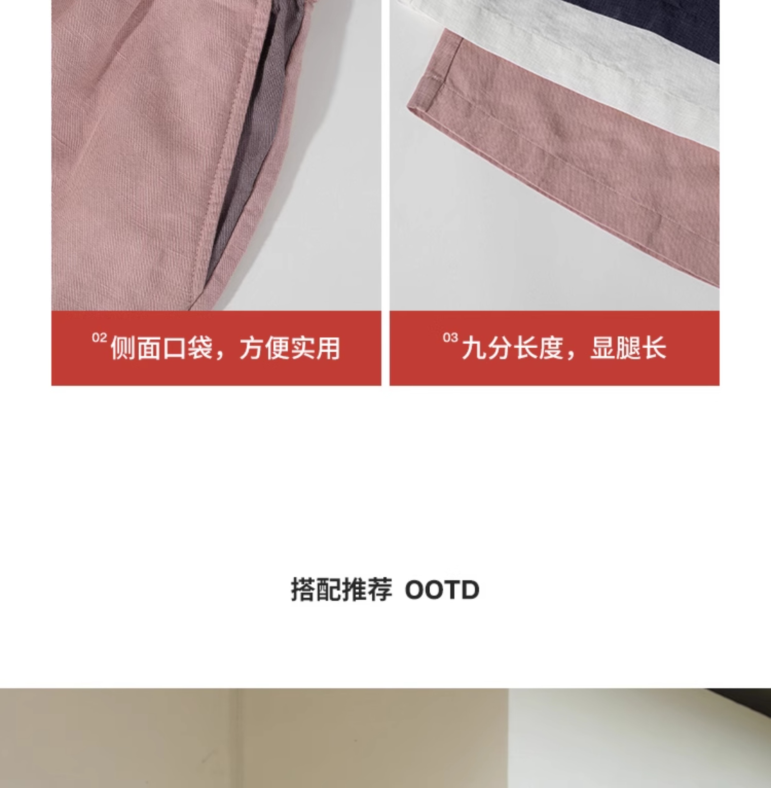 绽放旅行女装182朵/天丝亚麻拼色全腰松紧内加抽绳舒适阔腿九分裤