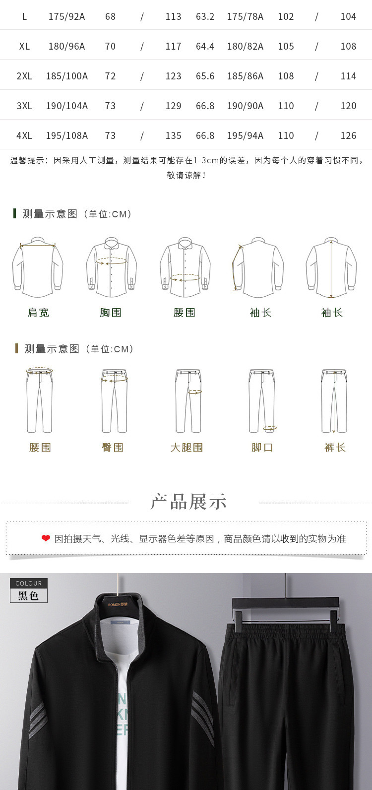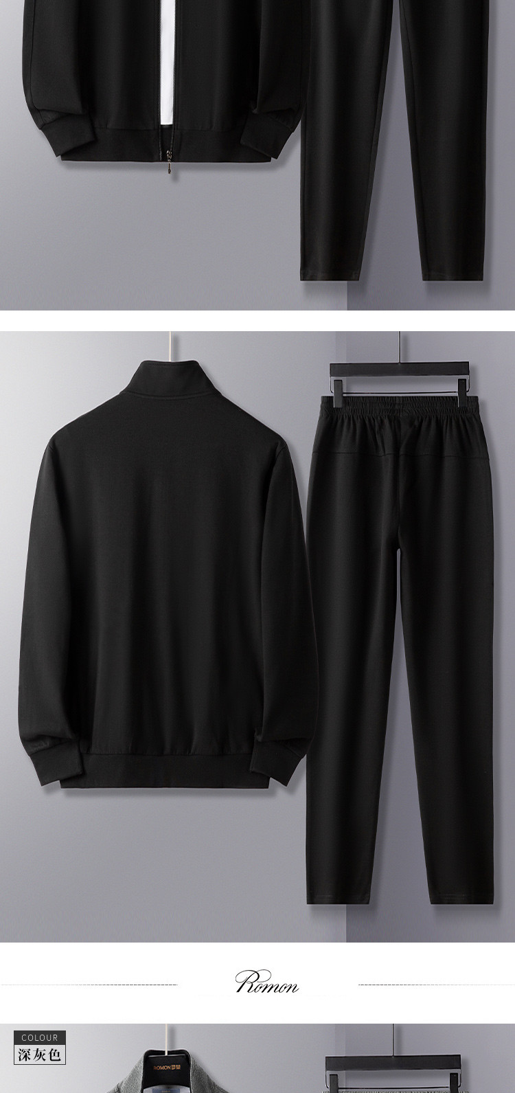 【上衣+裤子】罗蒙运动套装男春秋新品休闲百搭校园立领拉链两件套男
