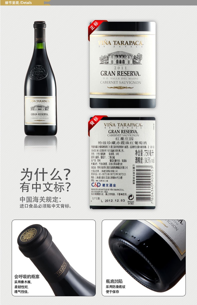 建发酒业 智利原瓶进口红酒 红蔓庄园特级珍藏赤霞珠葡萄酒 14.5度干红750ml 礼盒 红酒 单支木盒