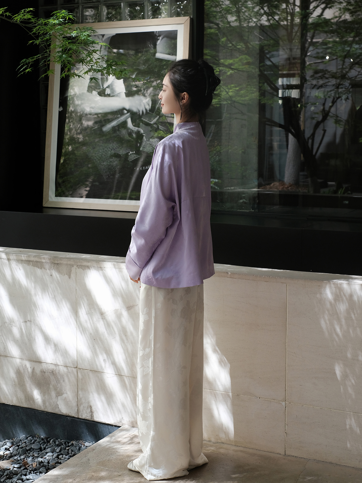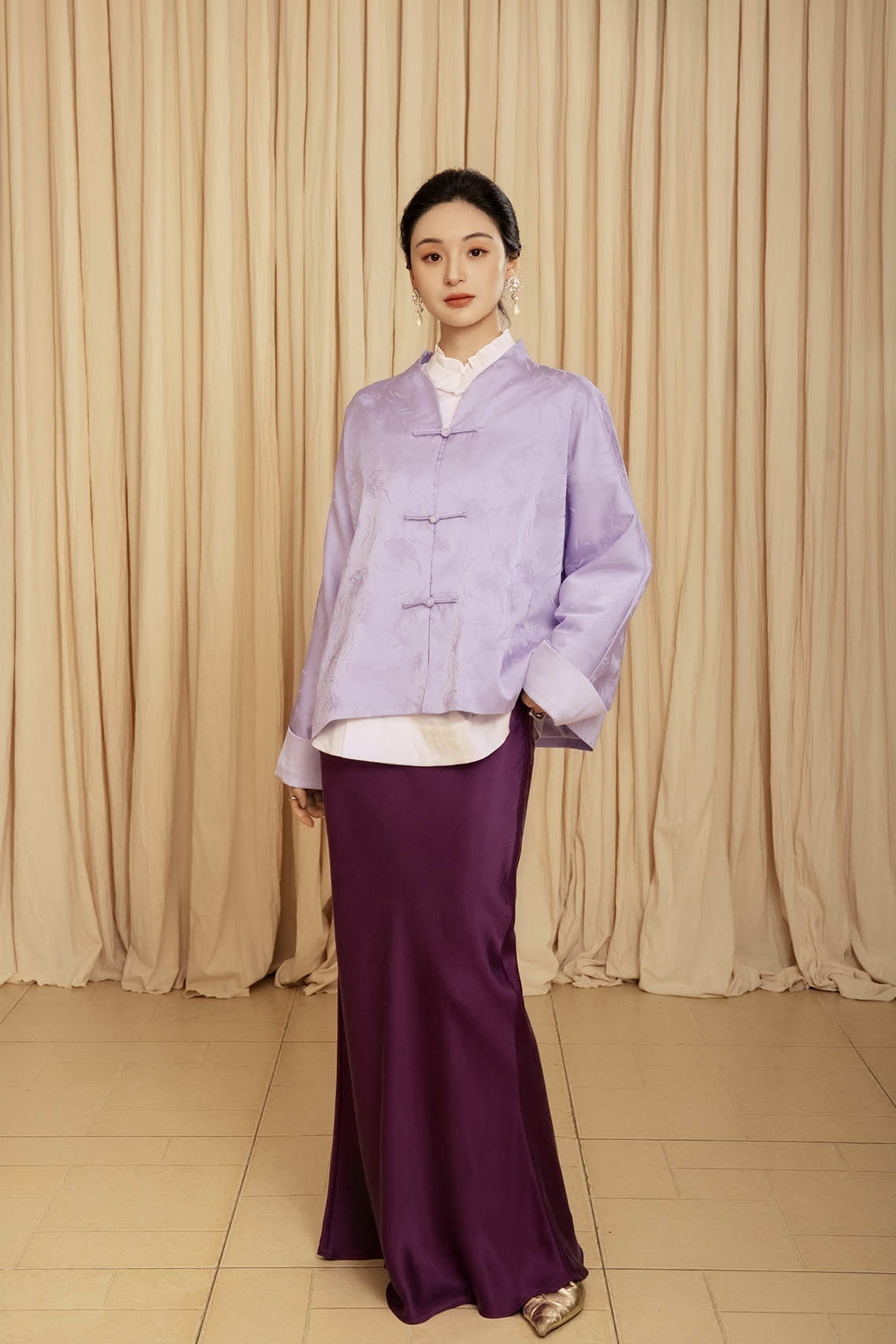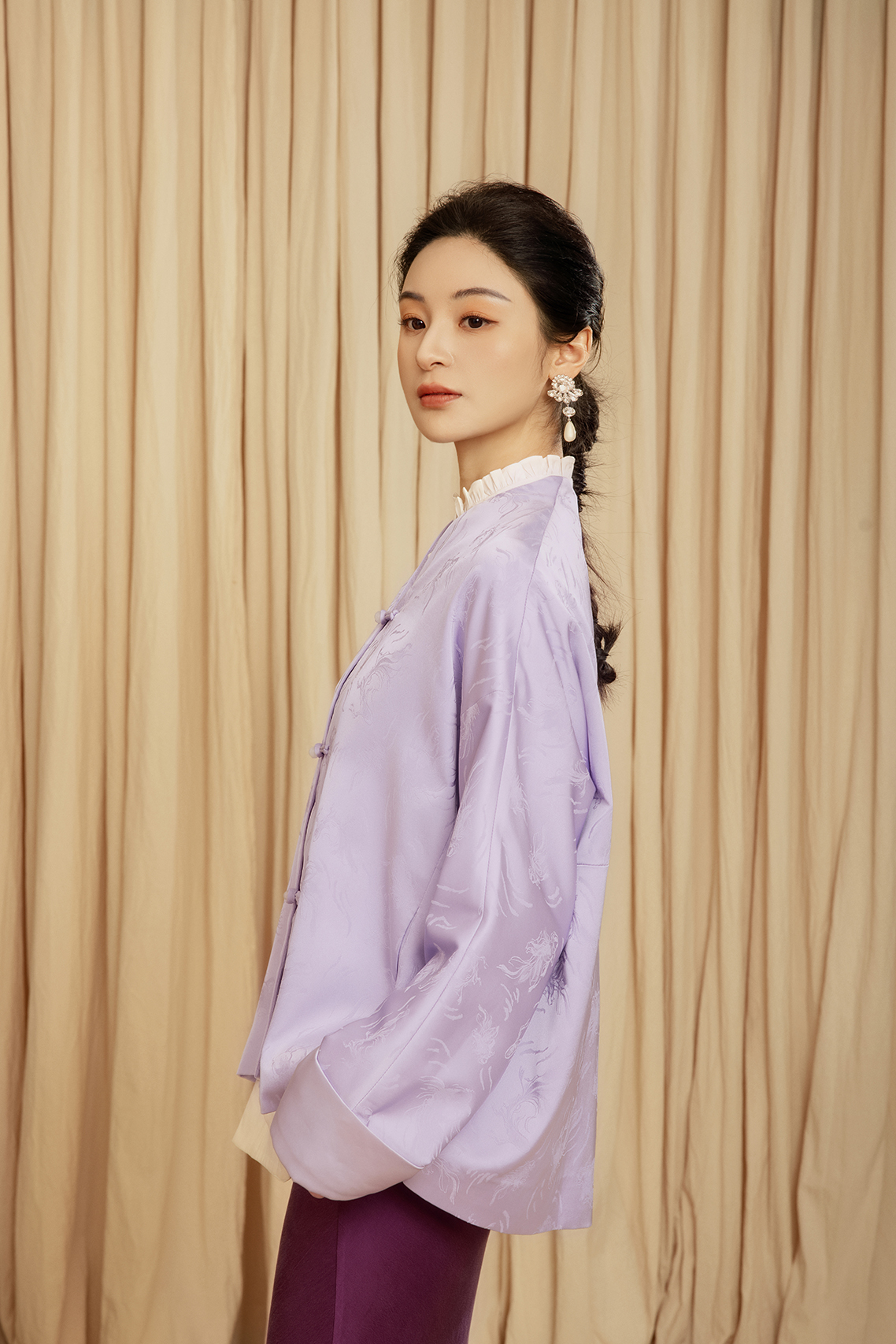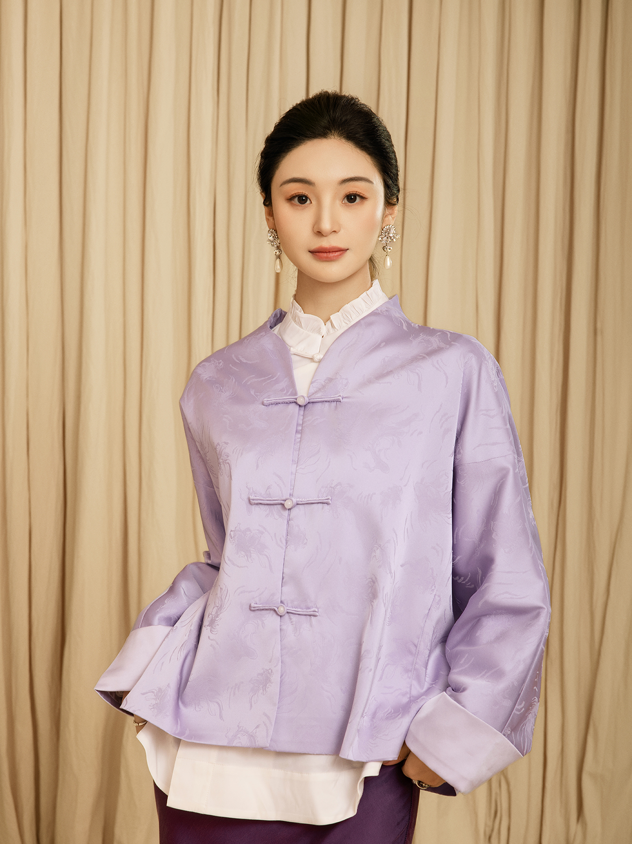 盛唐婧 |金鱼提花一字扣外套-紫色