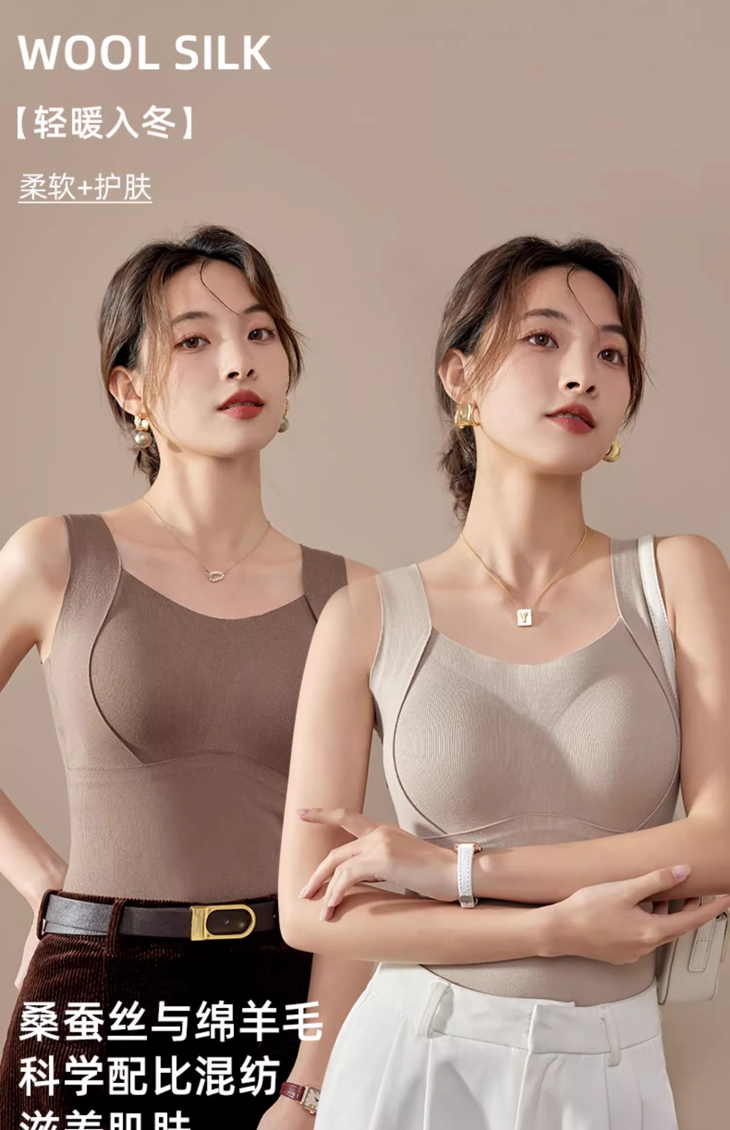 英国🇬🇧轻奢撤柜出口!自带胸垫的「LEOS VITI羊毛蚕丝背心」‼️1件=文胸+打底衣+保暖背心!!