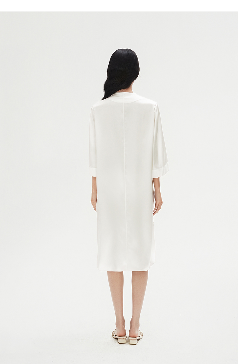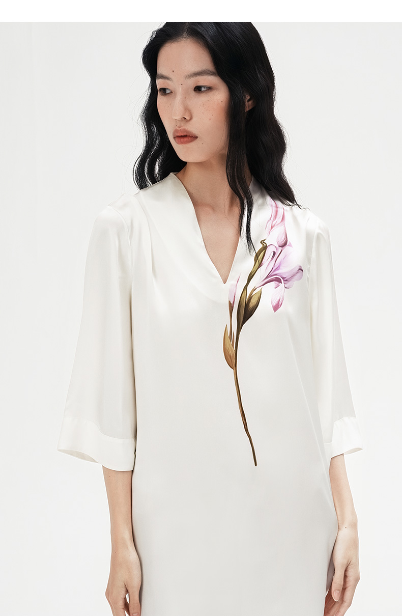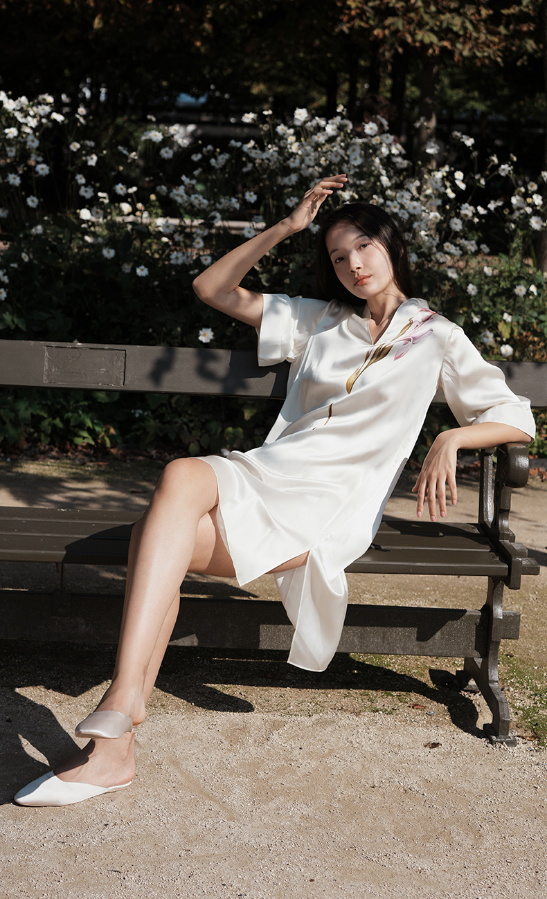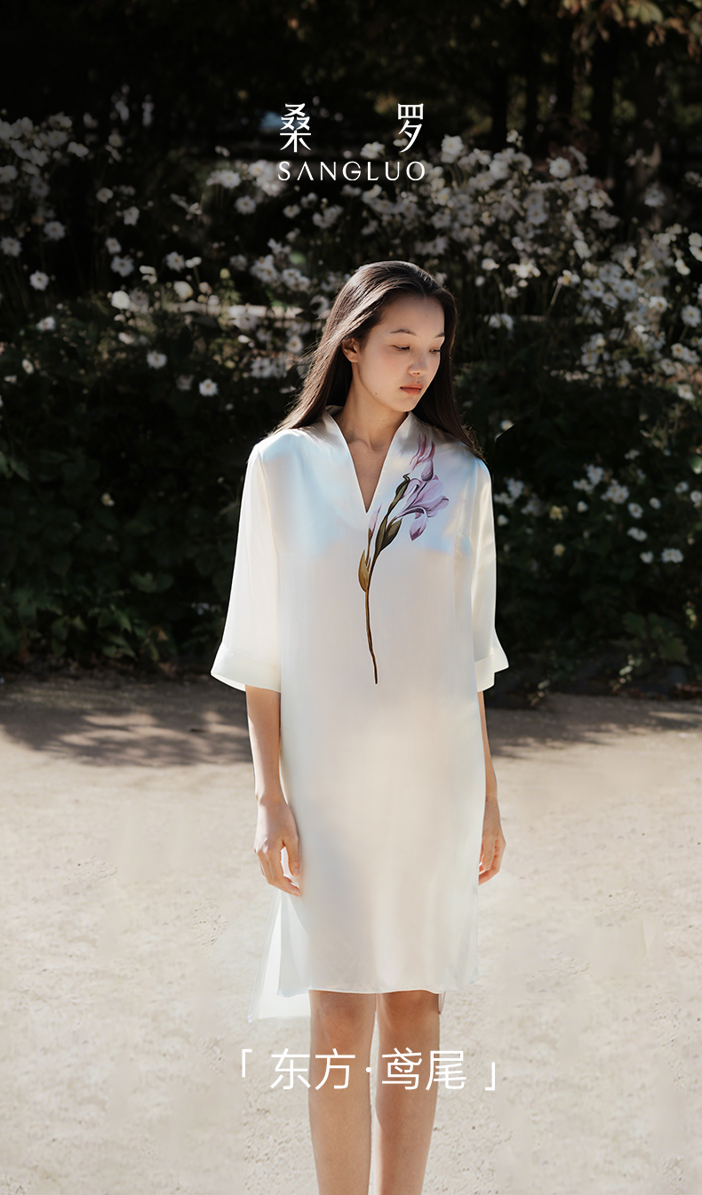 东方鸢尾』桑罗中式V领连衣裙桑蚕丝女士中袖睡裙可外穿