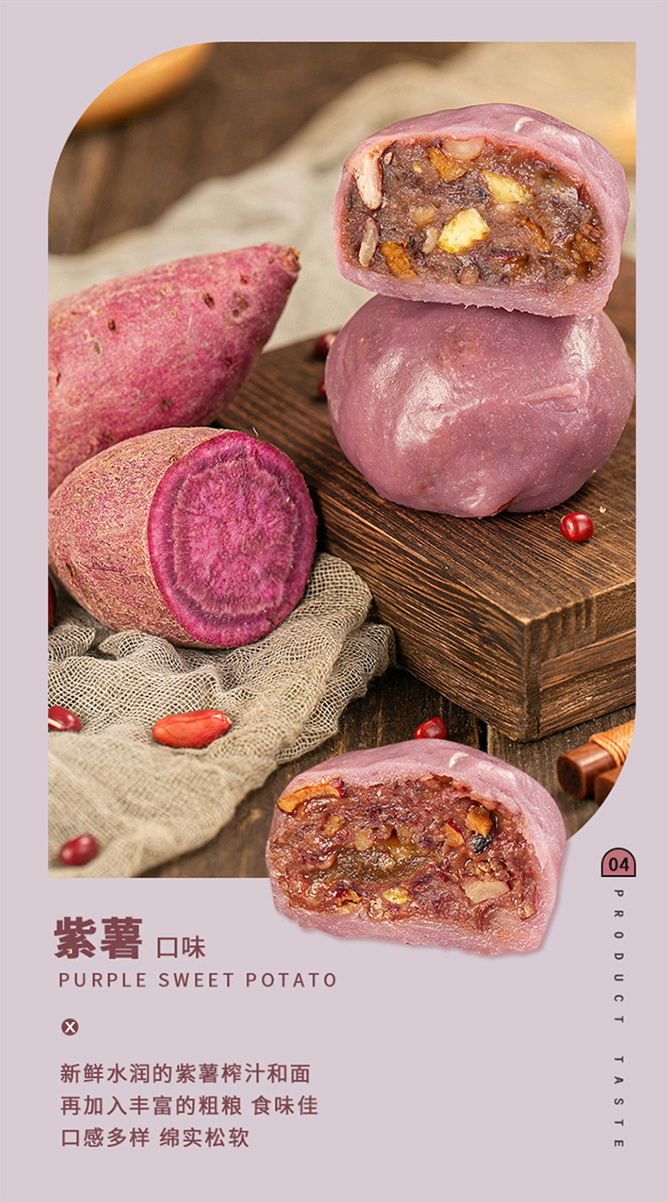 【好吃的】非遗粘豆包 无糖红豆/原味红豆/水晶紫米/彩豆香糕 精选五谷粗粮 馅料十足 软糯香甜 老少皆宜 4颗/袋 2袋装 快手早餐