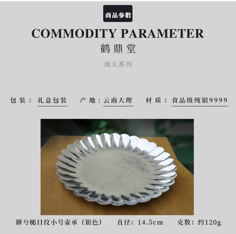 鹤鼎堂闻天系列韡兮槌目纹壶承(银色)(缺货)