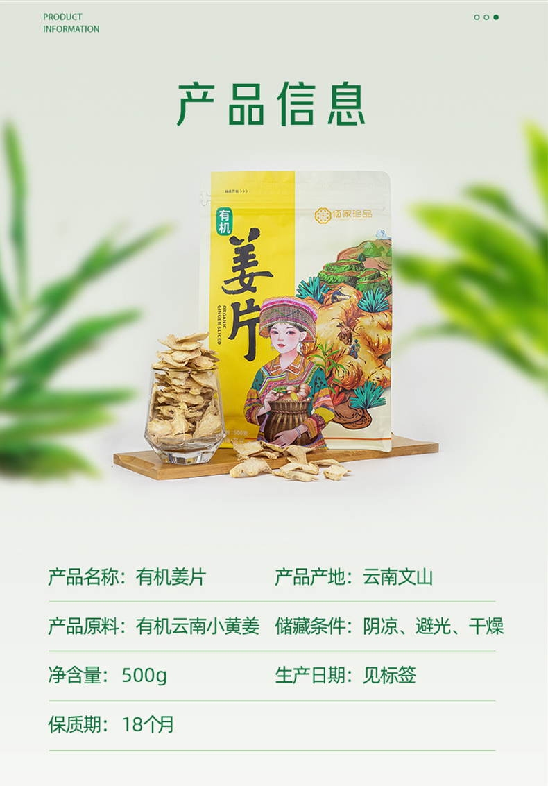 有机姜片500g/袋|四重有机云南小黄姜