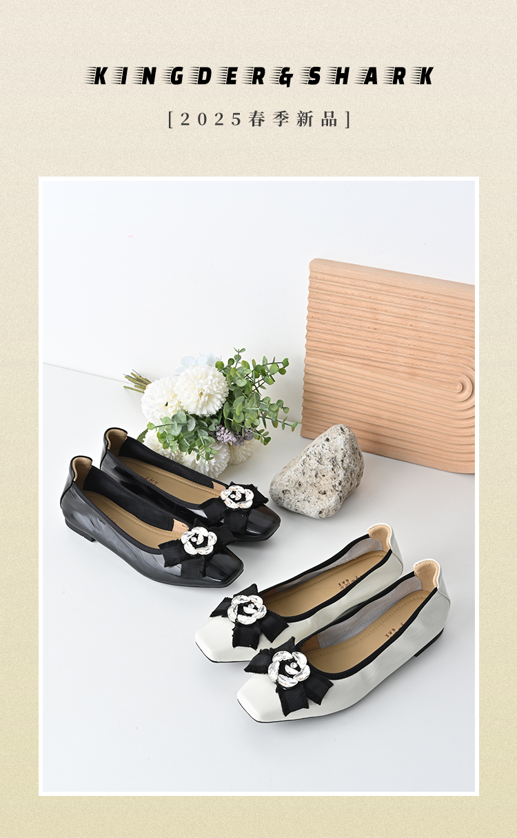 经典鲨2025春季款牛皮革复古方头平底一脚蹬柔软舒适通勤单鞋女KG25-517011