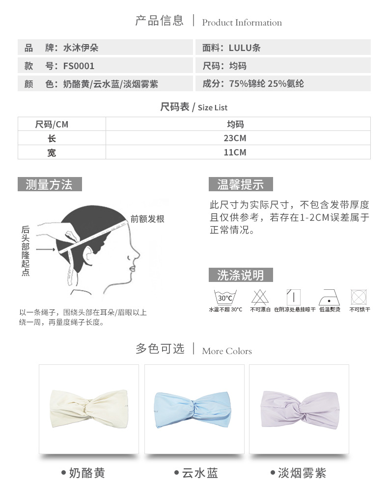 水沐伊朵运动束发带跑步健身止汗带FS0001