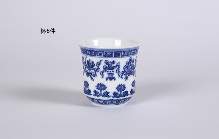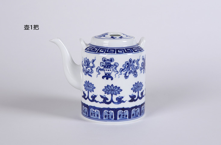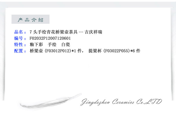 景德镇 国瓷红叶 7头手绘青花桥梁壶茶具--吉庆祥瑞