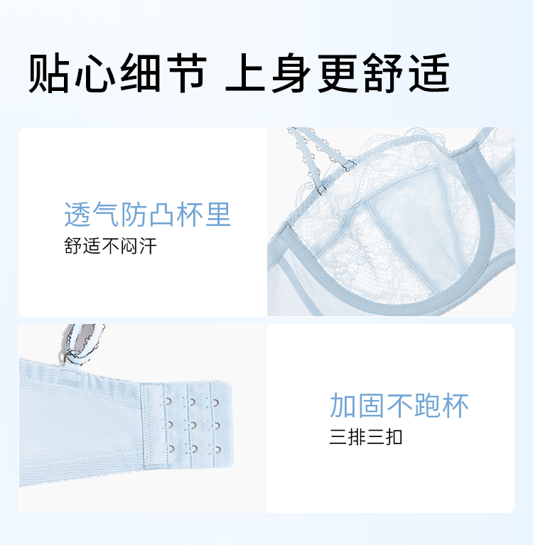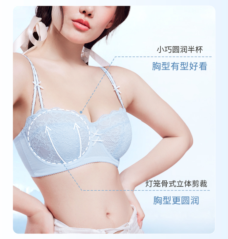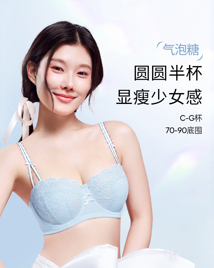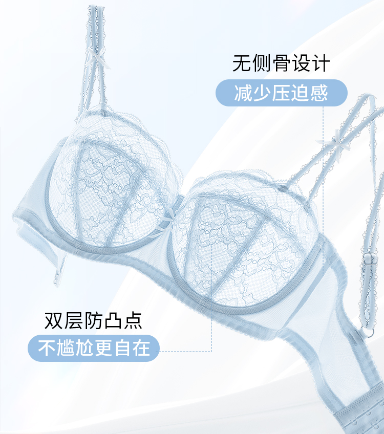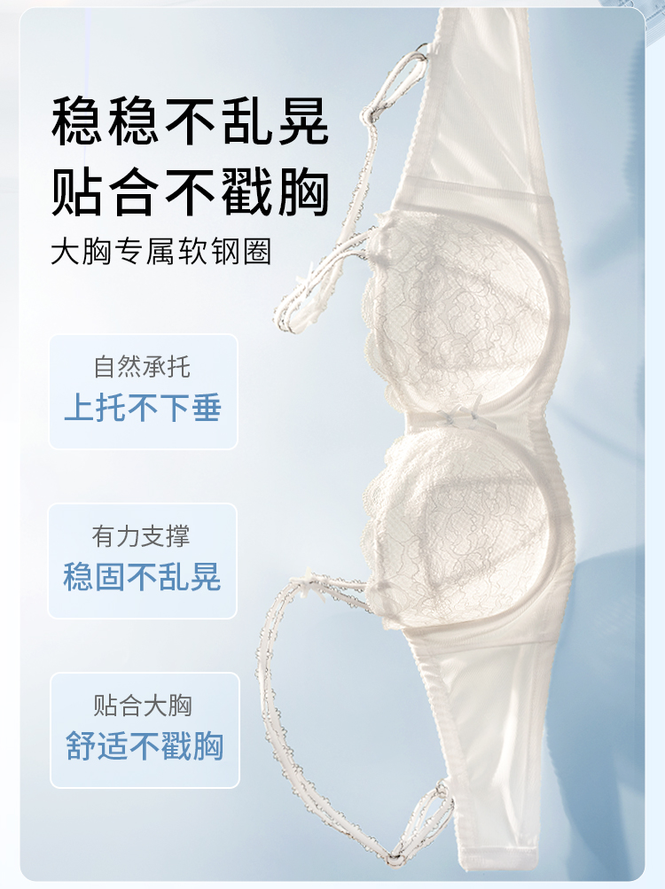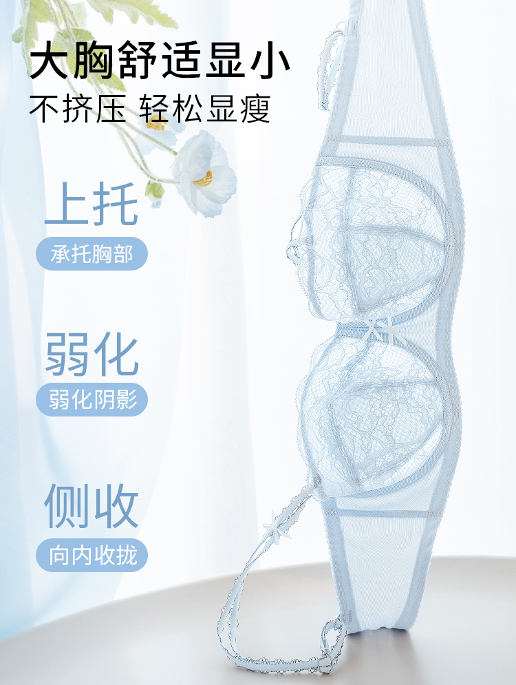 【积分兑换】奶糖派大胸显小气泡糖文胸超薄大胸显小防凸点蕾丝内衣女胸罩