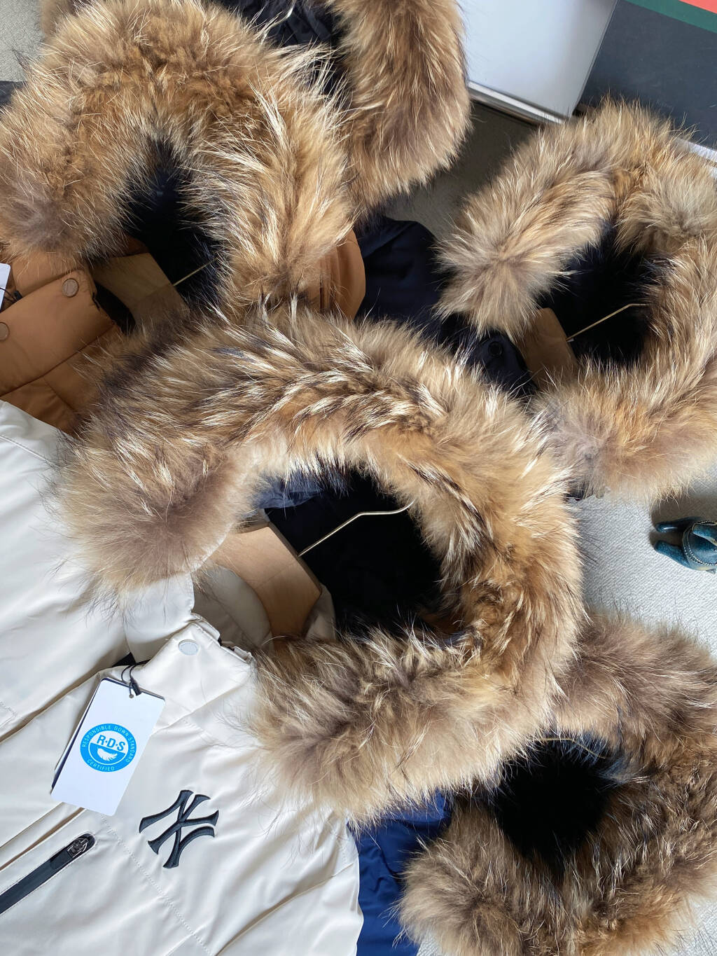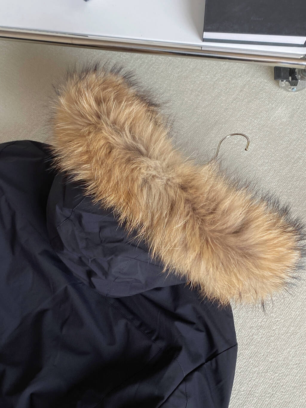 填充物80鹅绒,貉子毛真毛毛领,超级保暖。韩国一众明星拿来当团服的,必定是最好的!这款羽绒服运用了双层防绒内胆设计,防风性能超强,冬天穿会非常保暖!白鸭绒填充,蓬松度高,零下二十几度穿着也没问题~立领连帽设计走在户外把领子拉到最高,双手插进口袋非常暖和了~