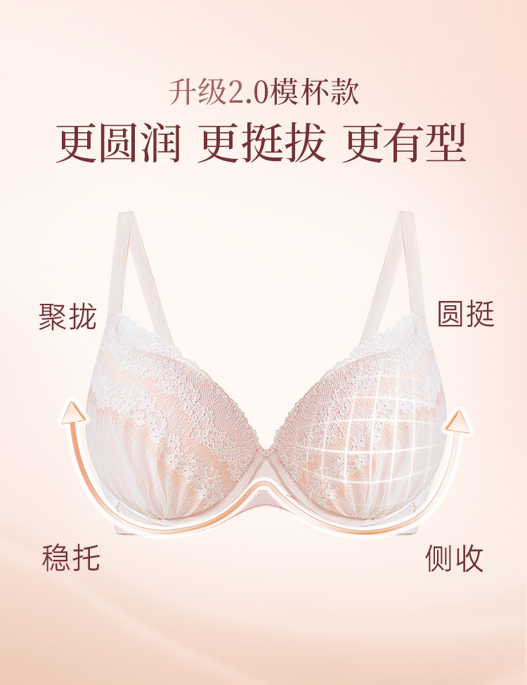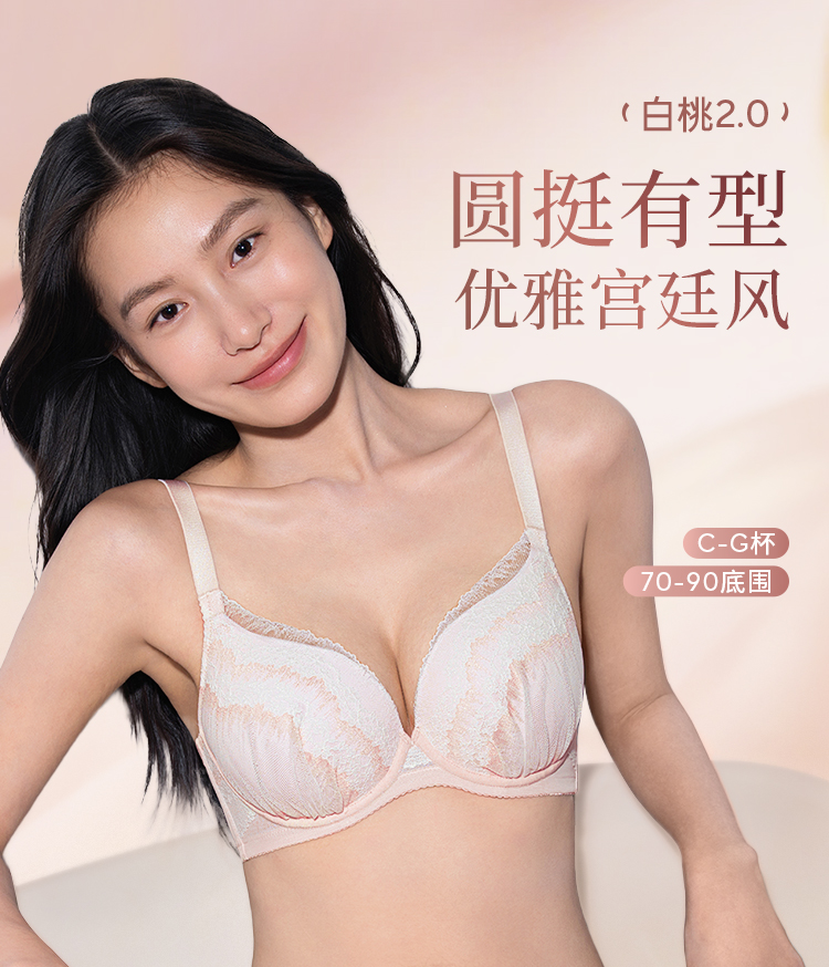 [白桃2.0]文胸3/4杯圆润挺拔大胸承托不显垂聚拢显瘦蕾丝内衣