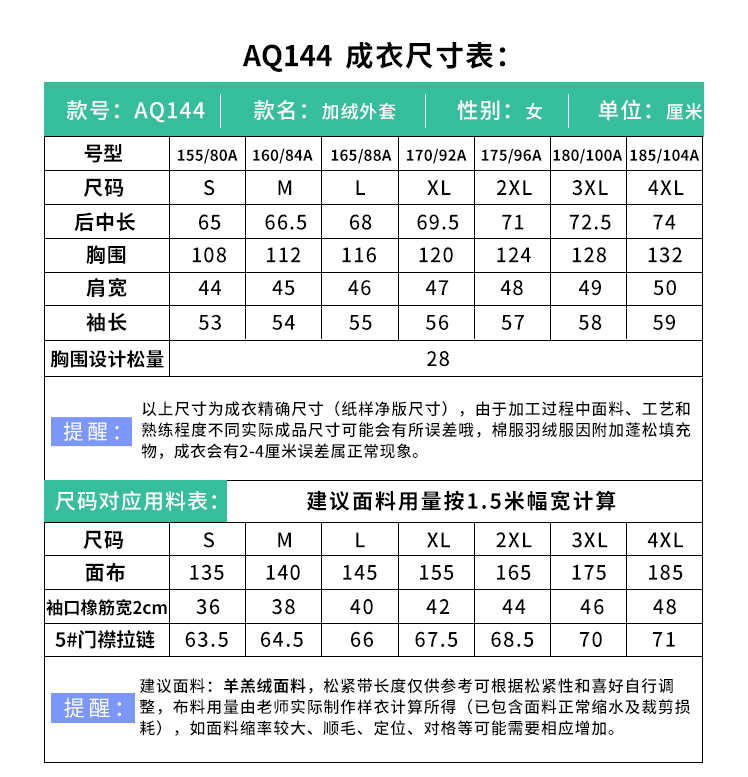 裁缝学苑AQ144新款羊羔毛外套纸样女装立领开衫上衣服装打板裁剪