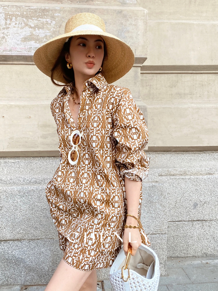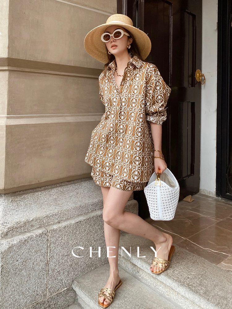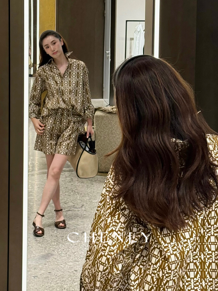 不退不换!尘衣|25春夏老钱印花衬衫套装