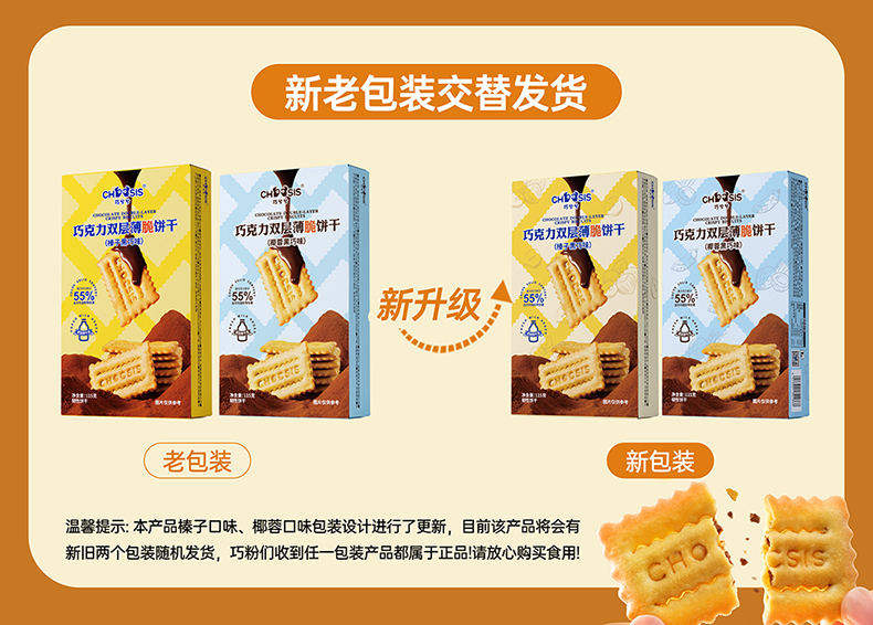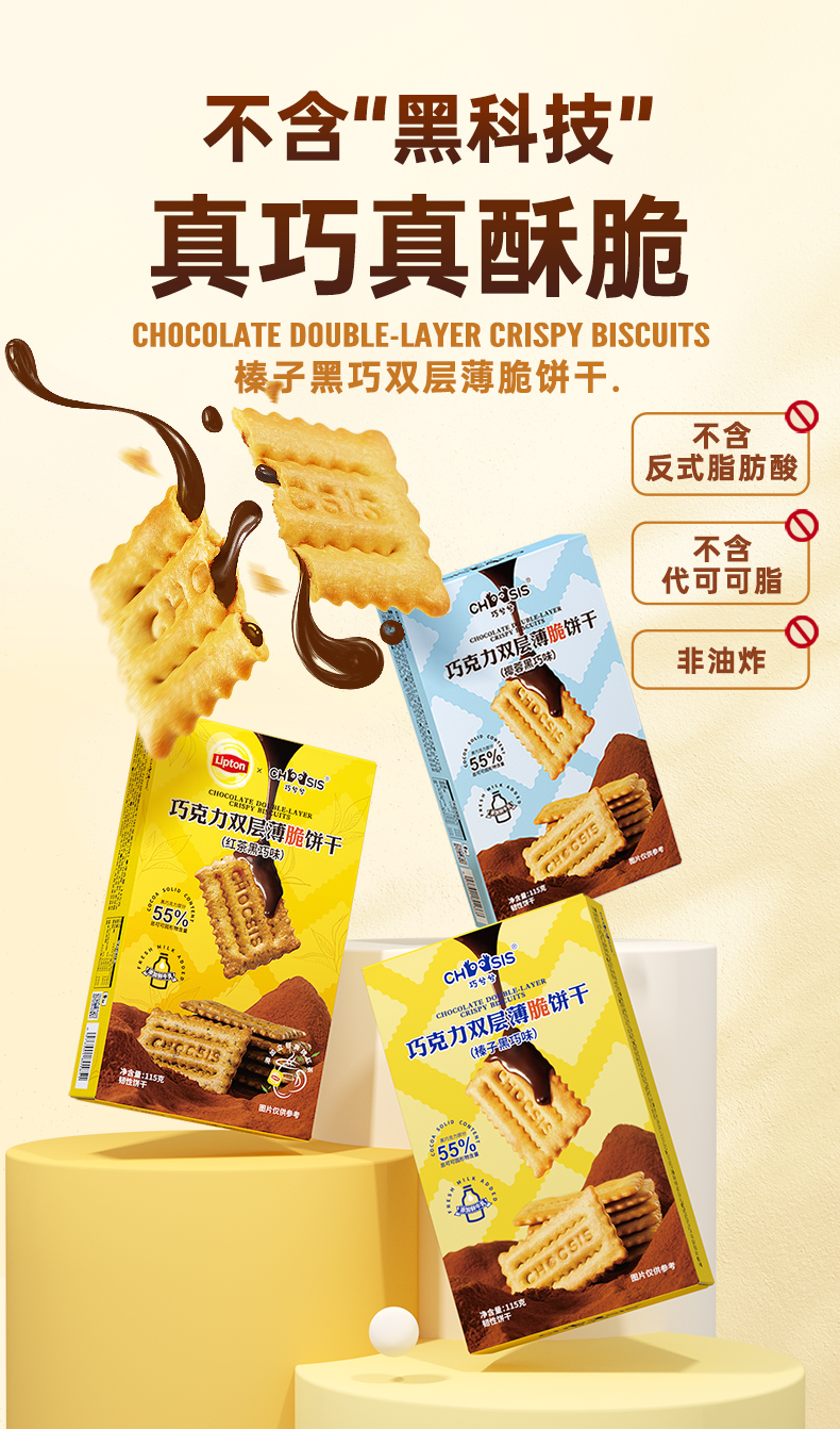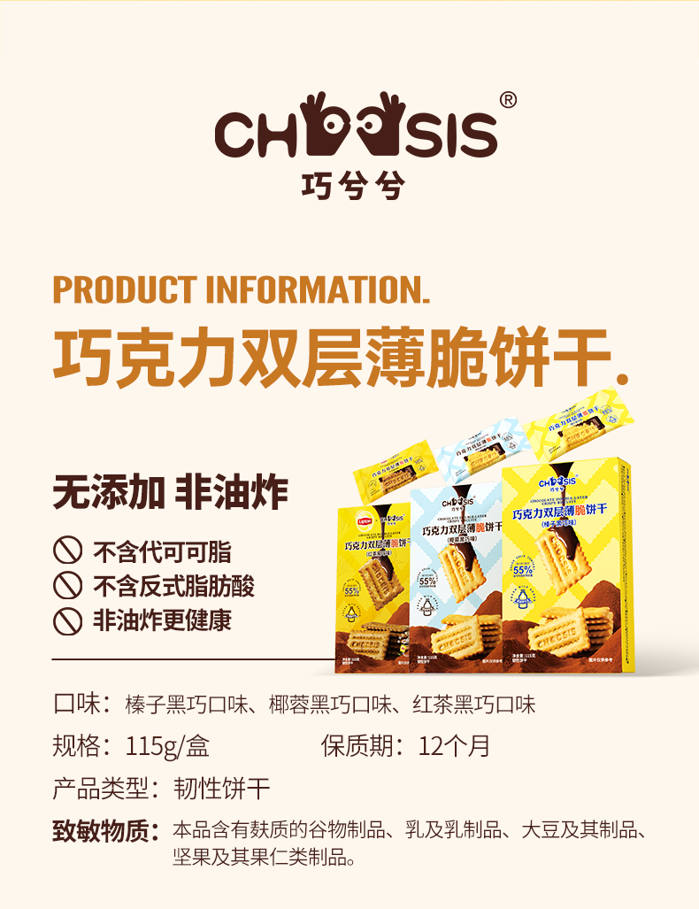 巧兮兮巧克力黑巧夹心双层薄脆饼干115g*3盒/6盒
