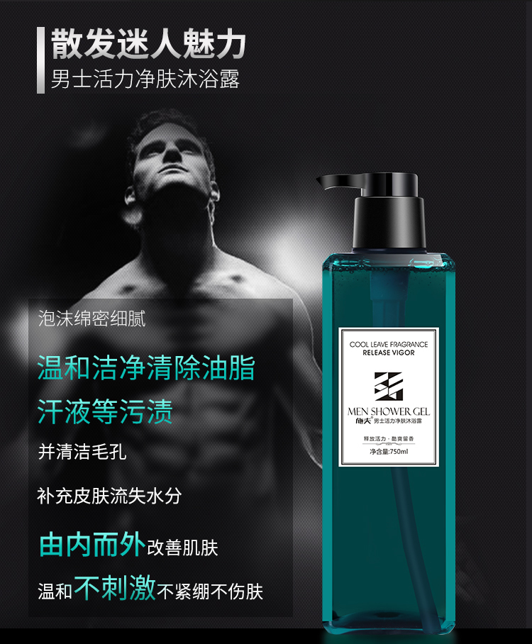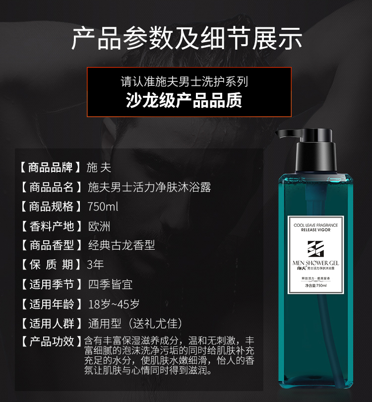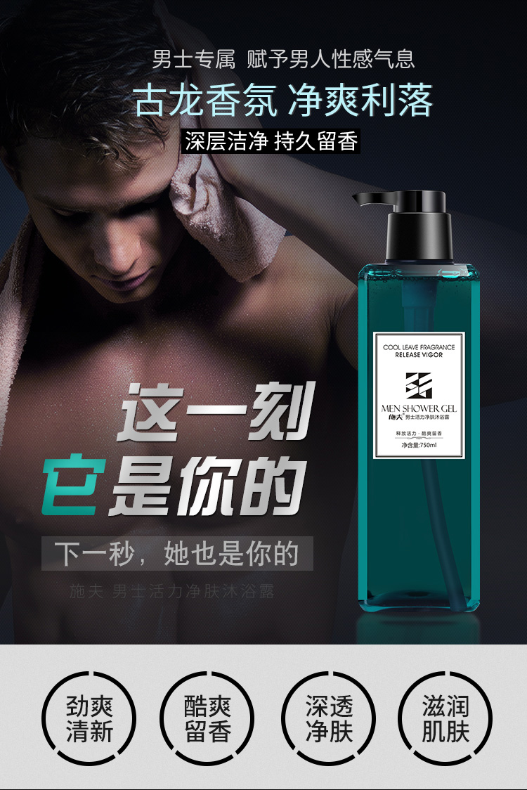 【洗出男人味 古龙魅力香氛】施夫男士沐浴露 深层清洁补水沐浴乳液 750ML