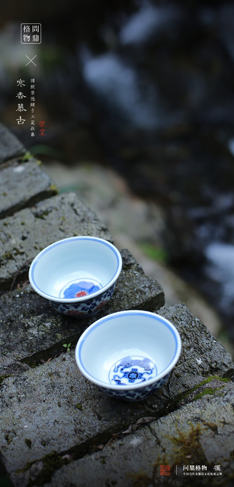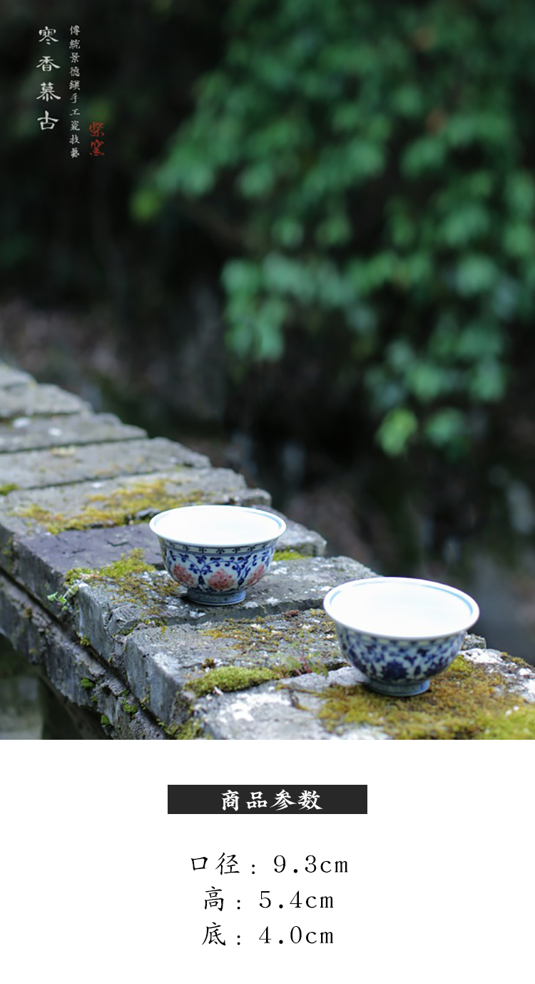 问鼎辛丑珍藏青花釉里红缠枝莲花卉压手杯(缺货) 青花缠枝莲鸳鸯纹压手杯(缺货)