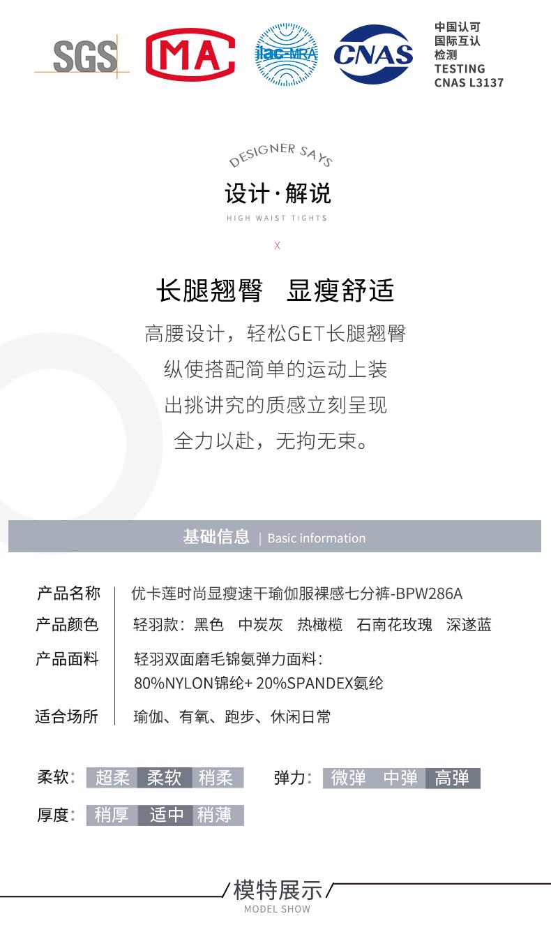 优卡莲轻羽BPW286A春夏紧身速干健身修身外穿薄款显瘦瑜伽七分裤
