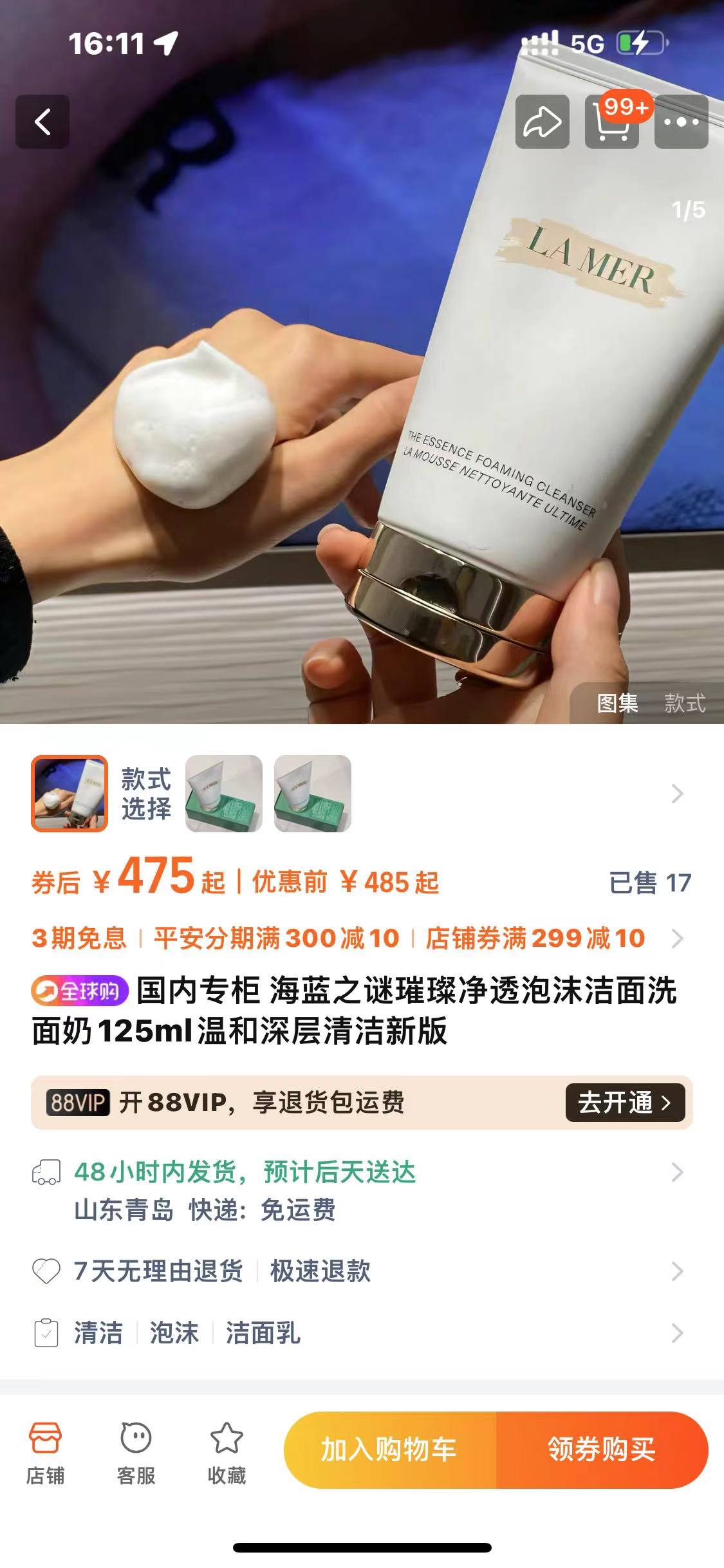可退货,深圳明通版。26年底保质期,24版海蓝之谜碧玺洗面奶125ml 海蓝碧玺洗面奶