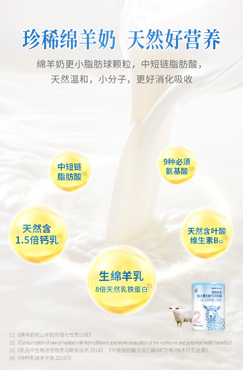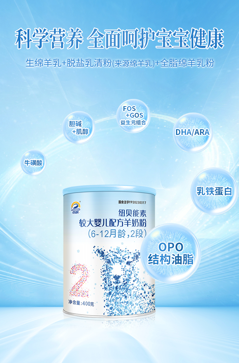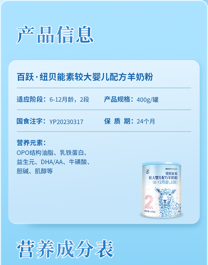 百跃纽贝能素2段婴幼儿配方羊乳粉400g (6-12个月)较大婴儿宝宝