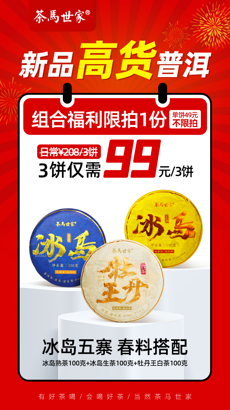 云南冰岛五寨古树春料拼配丨生普+熟普+牡丹王300g