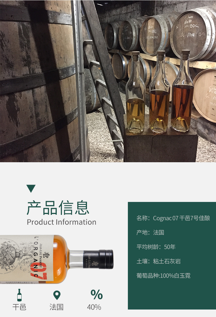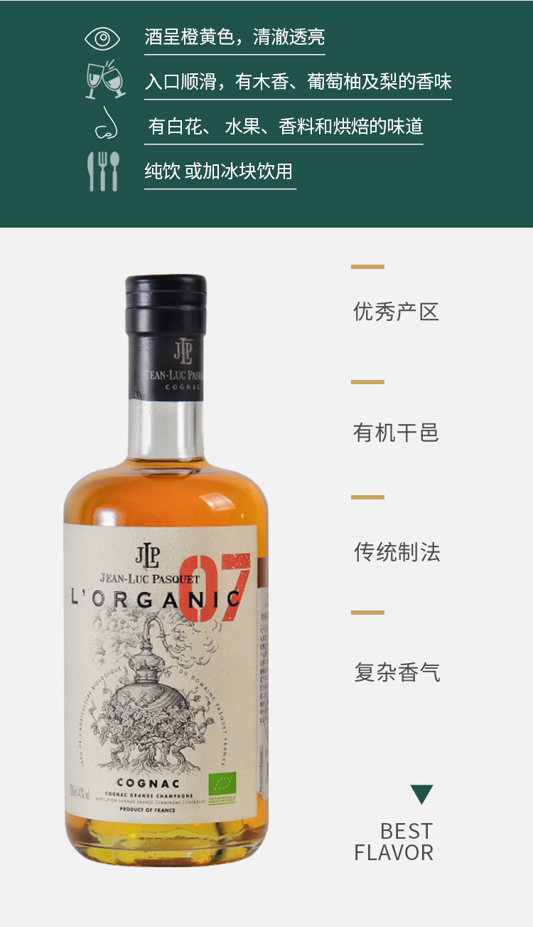 【有机干红】有机干邑vsop极其稀有的全有机种植干邑酒庄 干邑7号佳酿(07号白兰地)