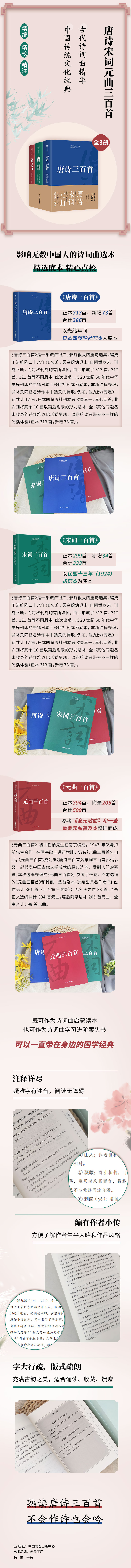唐诗宋词元曲三百首(套装全3册)| 精编精校精注,古代诗词曲精华,中国传统文化经典
