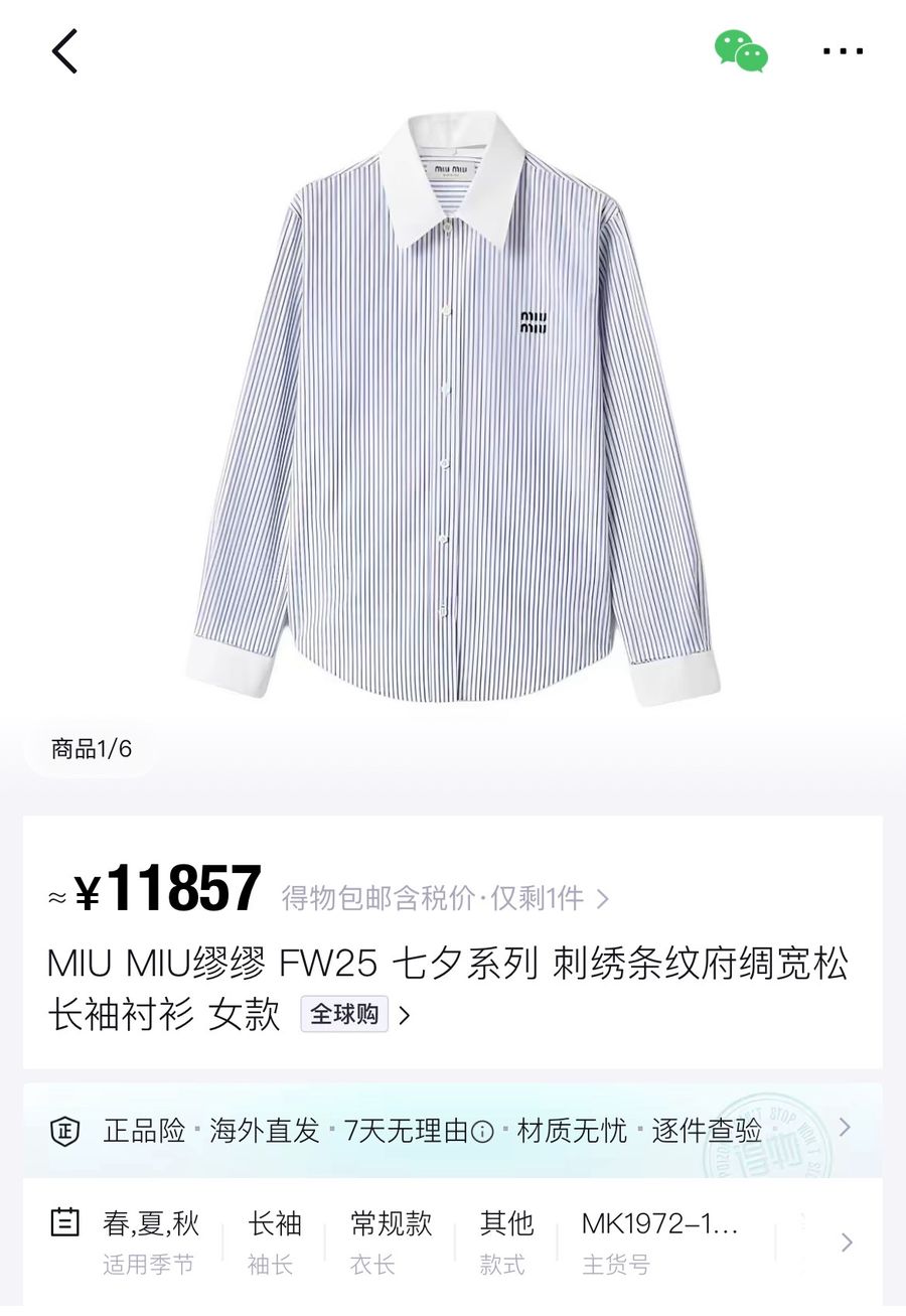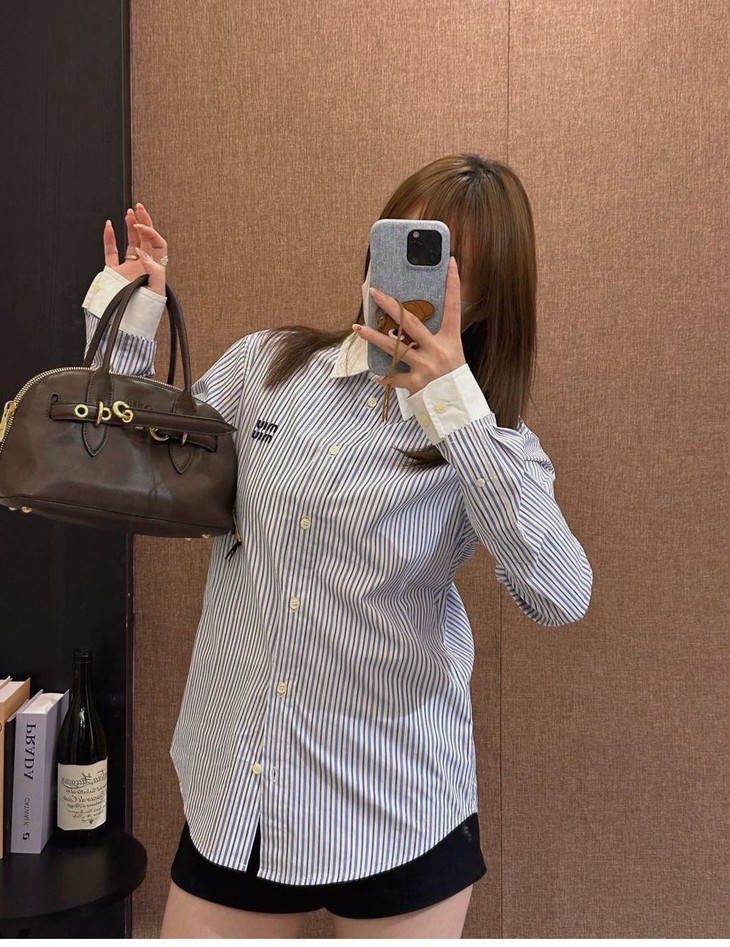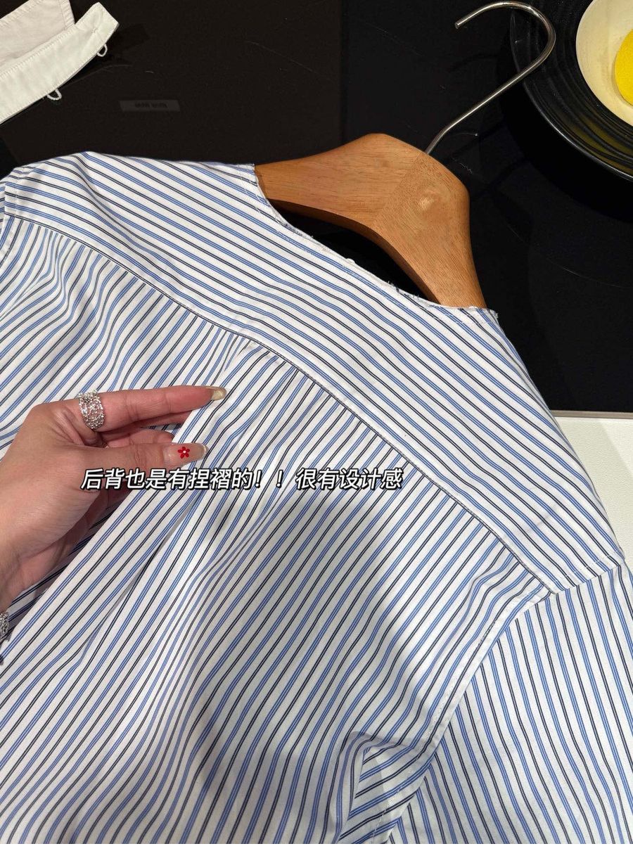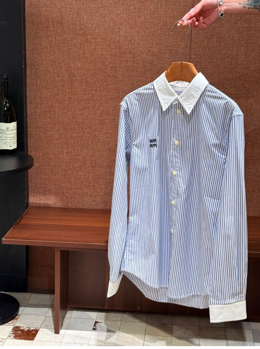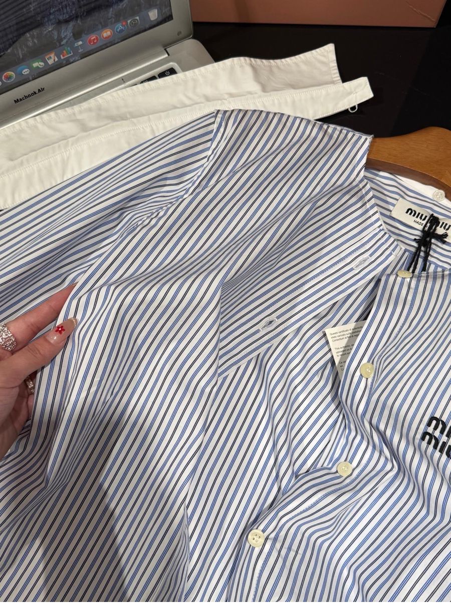 七夕限定首发新款!!采用法式衬衫灵魂的经典蓝白条,既有清新的学院风,又能穿出法式优雅感,这一刻miu的贵气感和活力少年感有了最完美的融合!